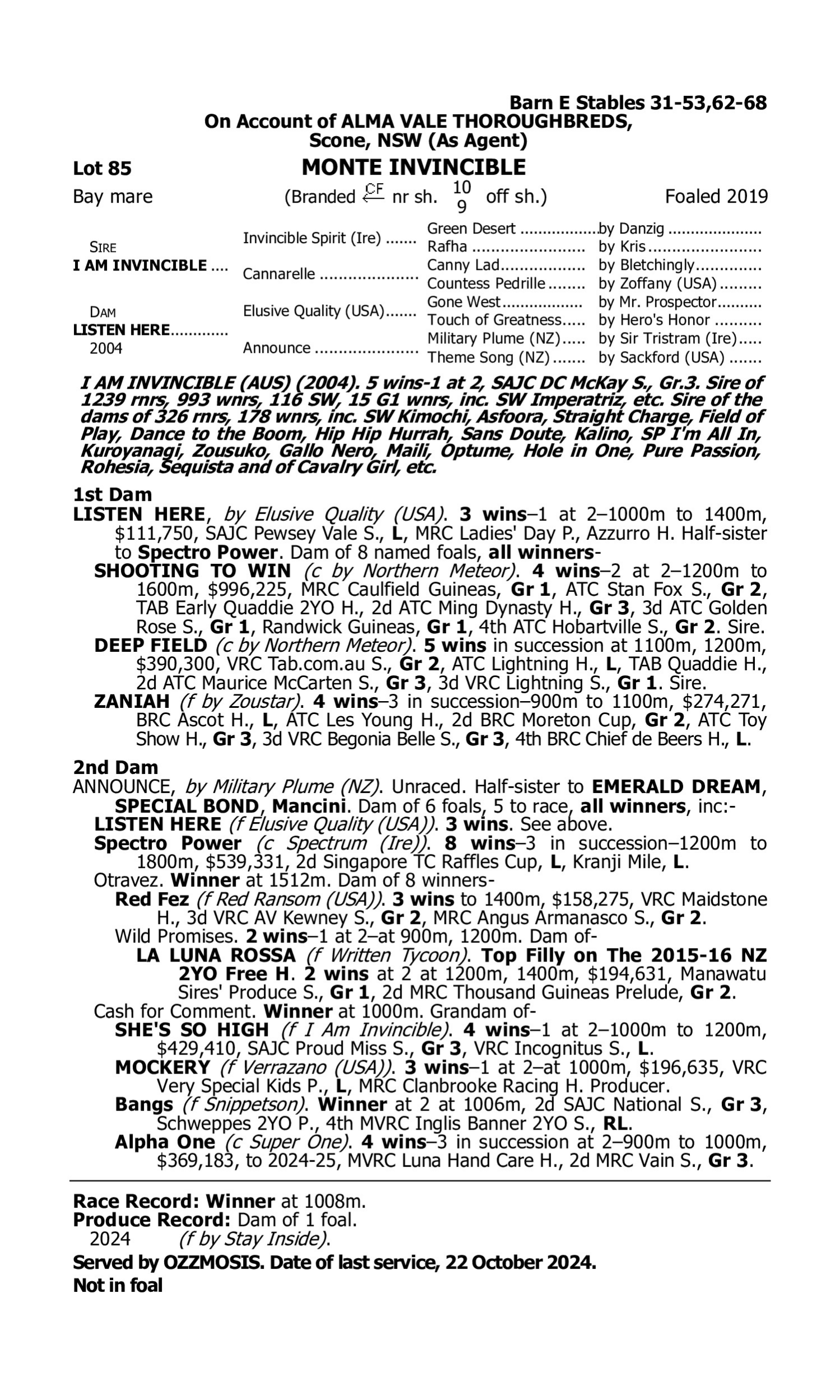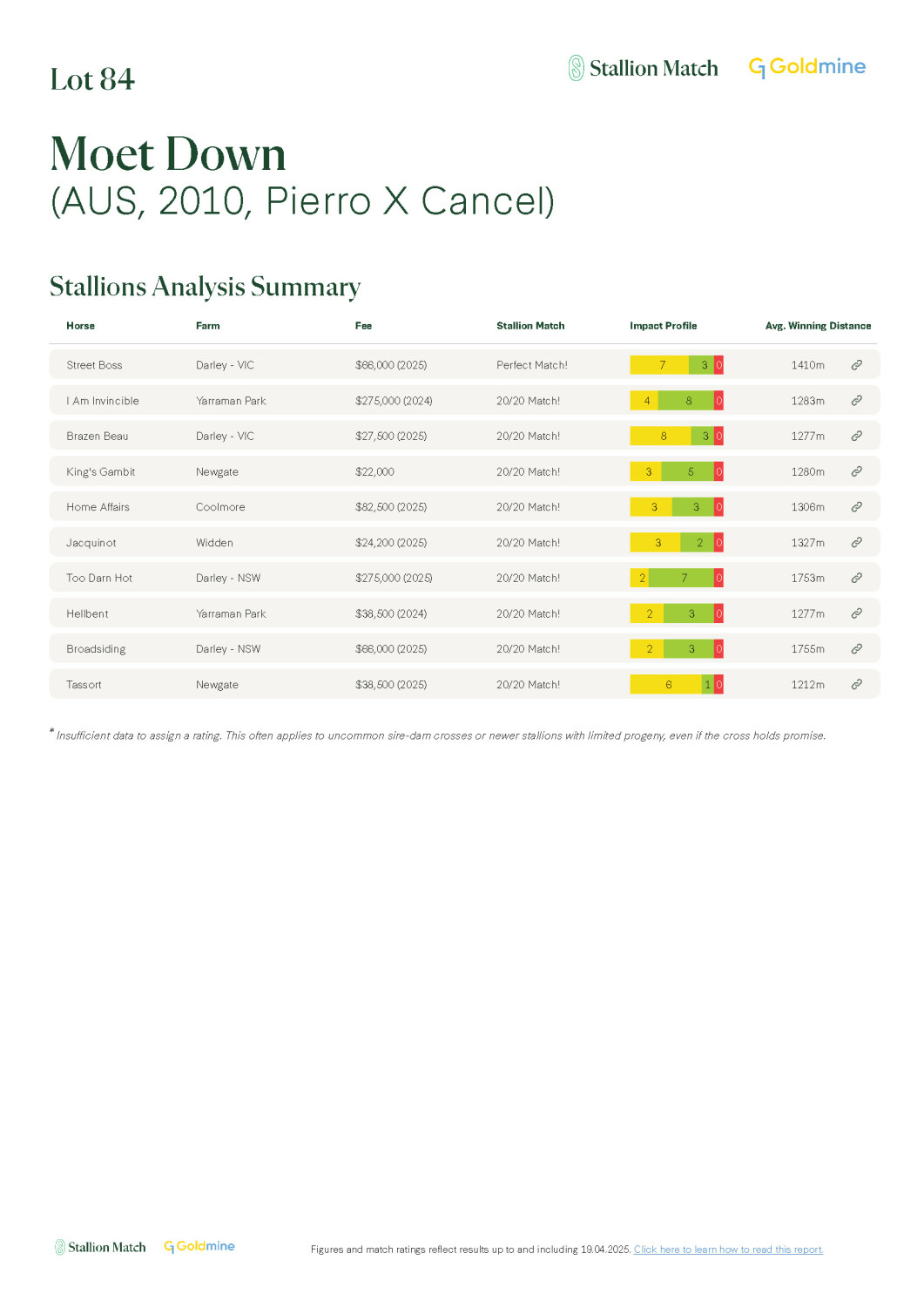Subject Horse Moet Down (2020.f. by Pierro-Cancel, by Exceed and Excel-Cataclysm). 2025-04-19 3rd Auckland TR Al Basti Equiworld Dubai H. 2nd Dam Trembles (2021.f. by Too Darn Hot-Earthquake, by Exceed and Excel-Cataclysm). 2025-06-04 1st MRC (Sandown) Sportsbet H. 2025-05-12 1st MRC (Mornington) Brian's Shed and Services Maiden P. Zealously (2021.g. by Harry Angel-Duenna, by Sepoy-Palomares). 2025-05-17 1st Scone RC Gro Events H.