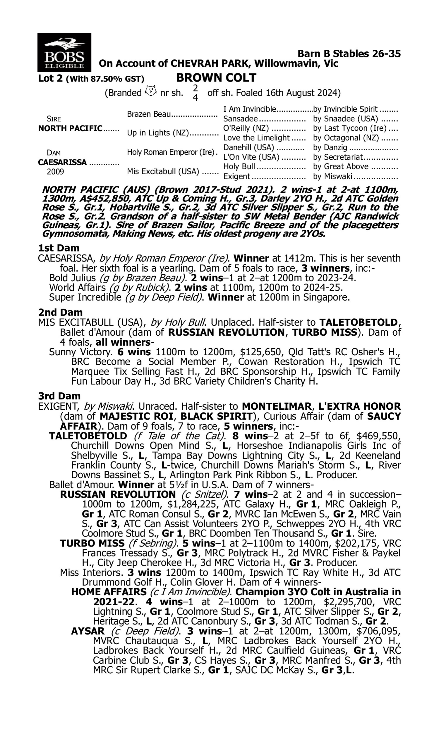 Pedigree for Lot 1 Russian Revolution - Cadet Roni (USA)