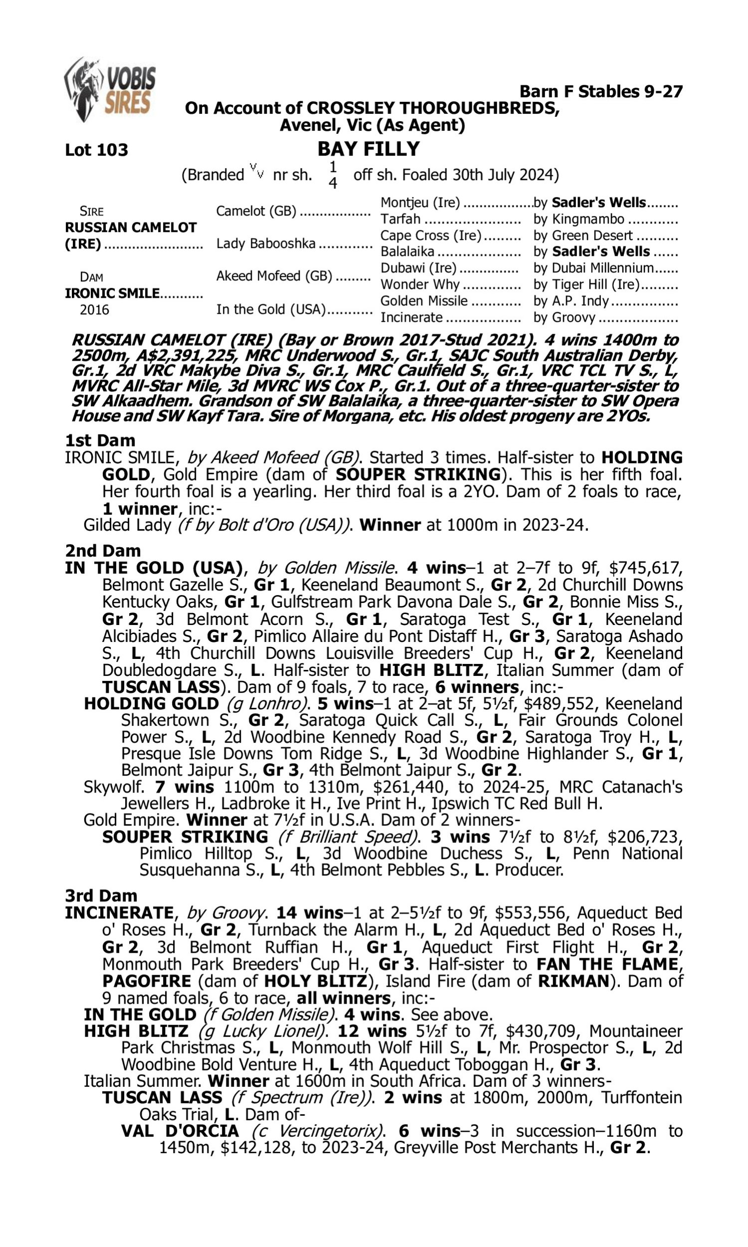 Pedigree for Lot 102 Toronado (IRE) - Into the Mist