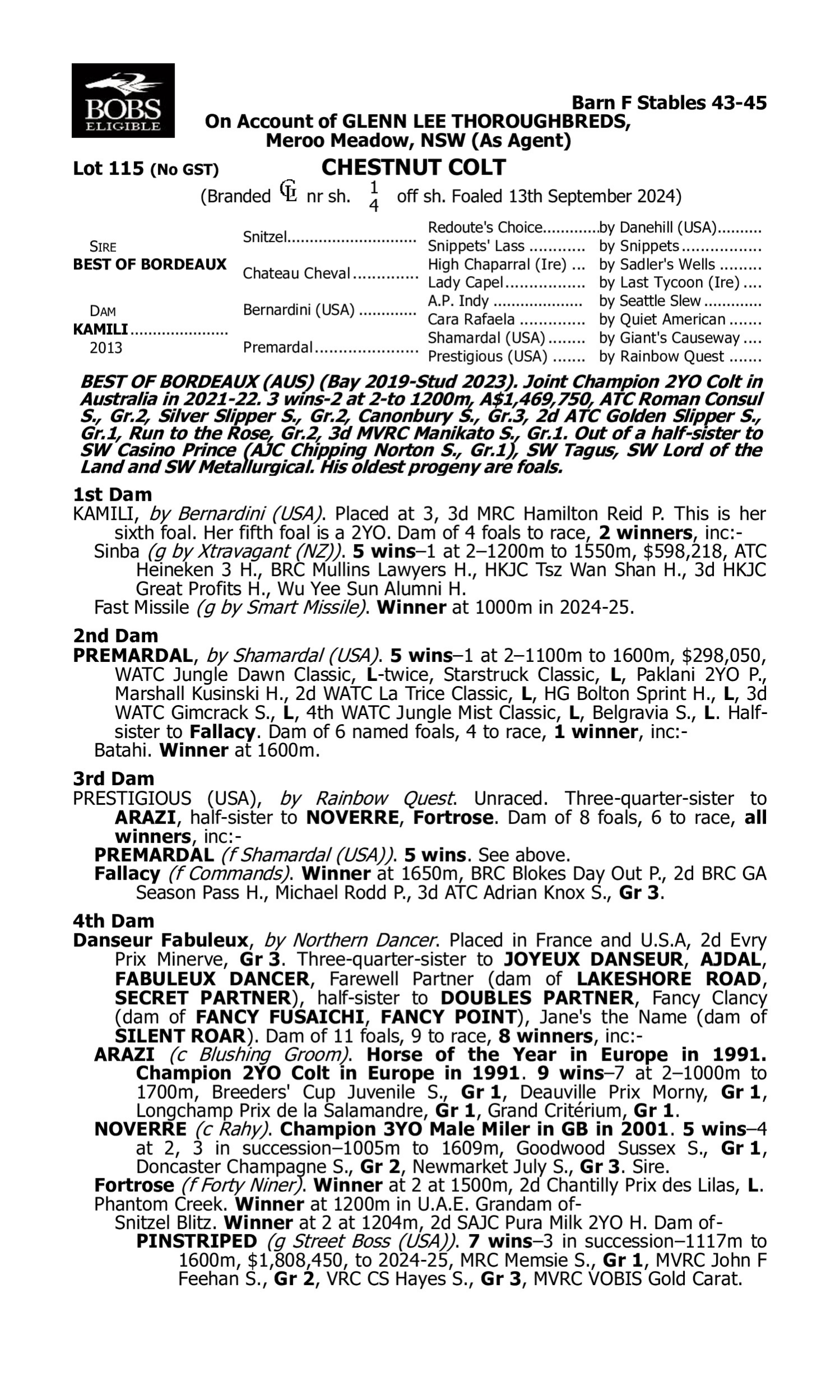 Pedigree for Lot 114 Toronado (IRE) - Justice Glory