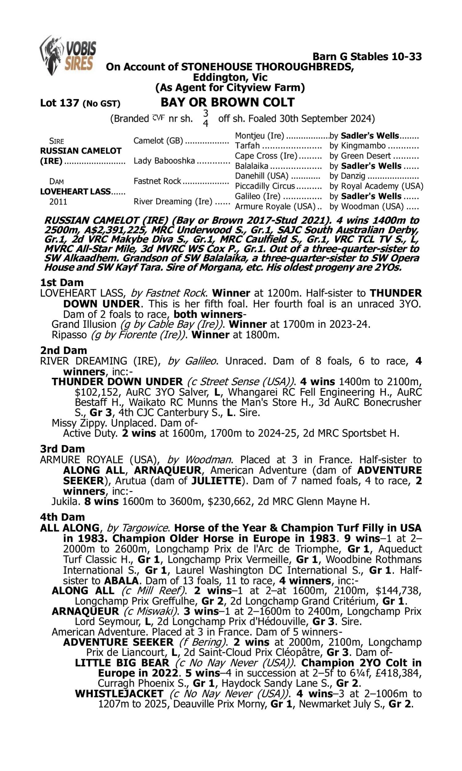 2nd Dam Here the Crowd (2020.f. by Trapeze Artist-Fleur De'here, by Dehere-Fleur de Chine). 2025-05-15 1st Southside Racing Bunyip Equipment H. Housewife (2021.f. by Capitalist-Casadiva, by Fastnet Rock-Fleur De'here). 2025-07-02 1st WATC (Northam) Western Racepix H.