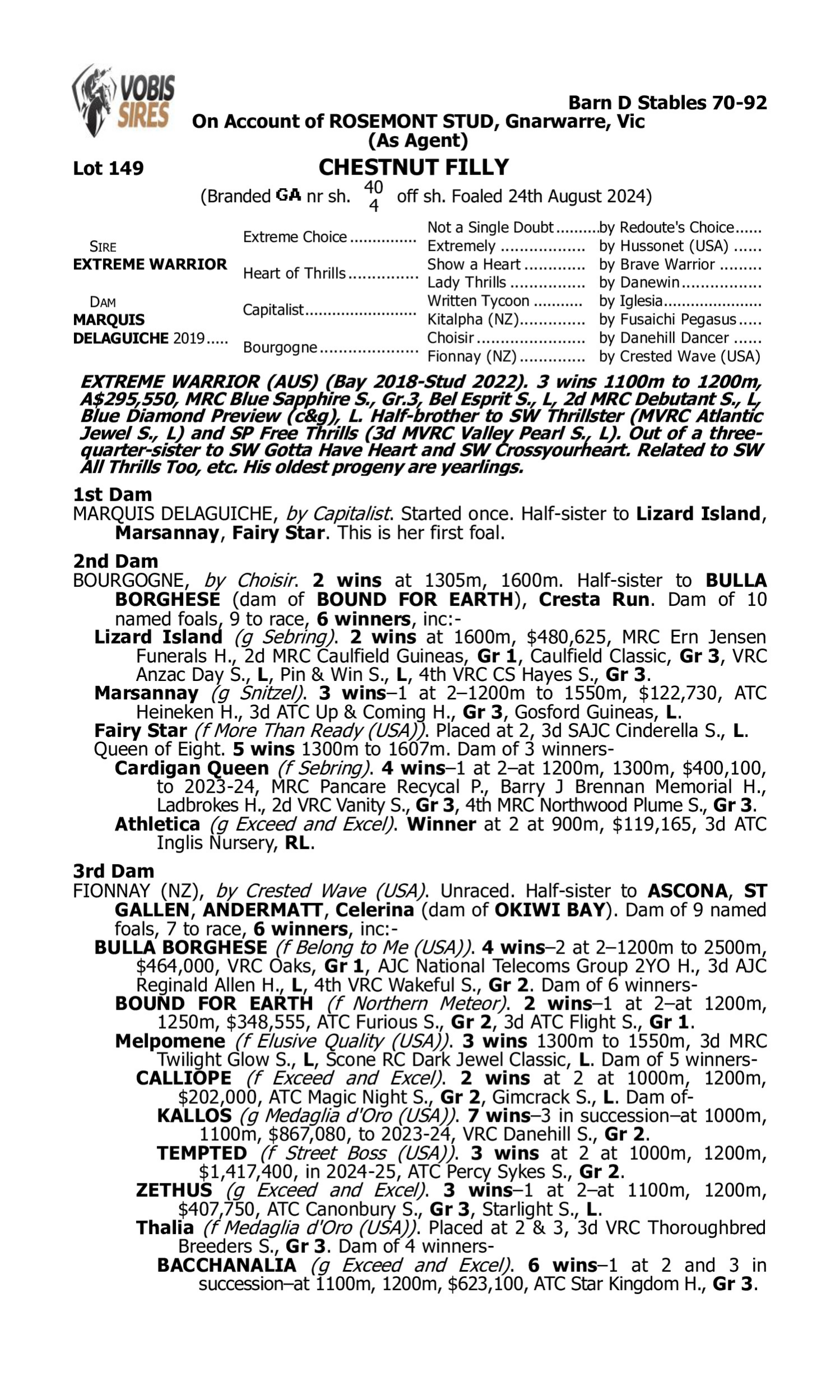 2nd Dam Mandara Sun (2020.f. by The Autumn Sun-Mandawara, by Daylami-Mintly Fresh). 2025-05-18 1st Sale TC Ranford's Family Butcher H. 3rd Dam Stop the Cavalry (2021.f. by Lope de Vega-Cartiem, by Cape Cross-Mintaka). 2025-07-01 3rd Chelmsford City Queen Charlotte S. L