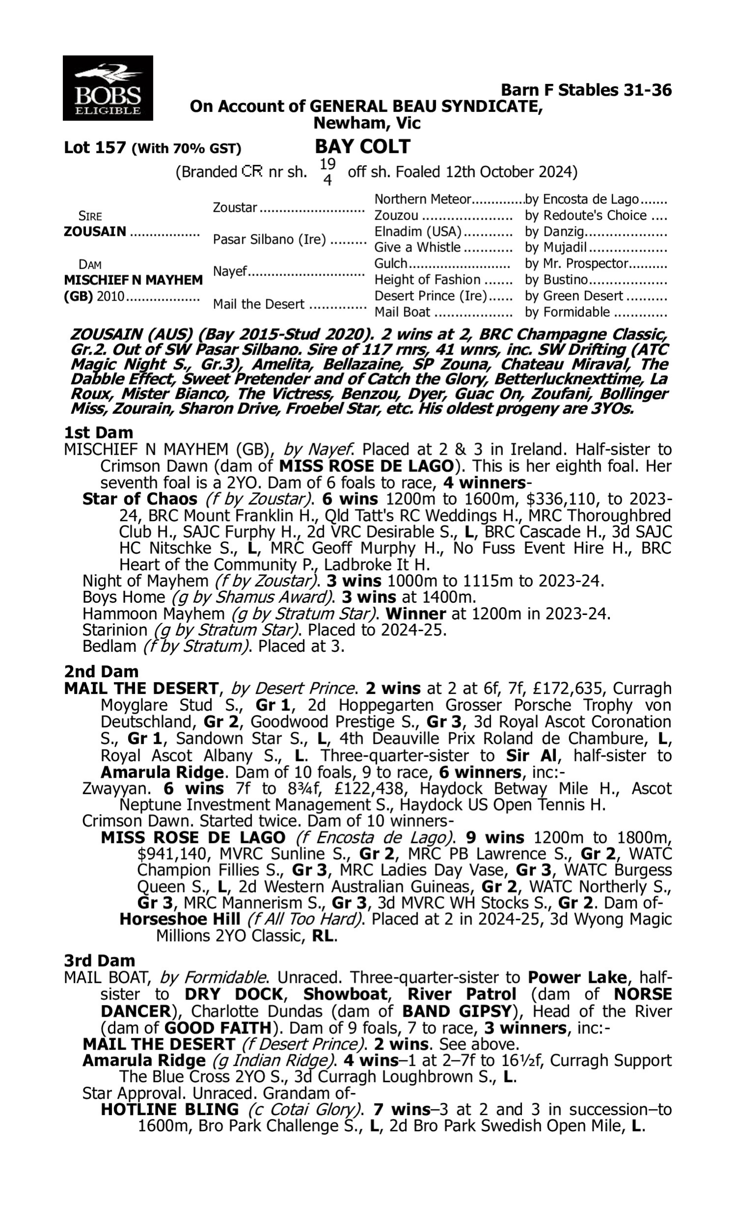 Lot 156 has pedigree updates since the release of the catalogue.