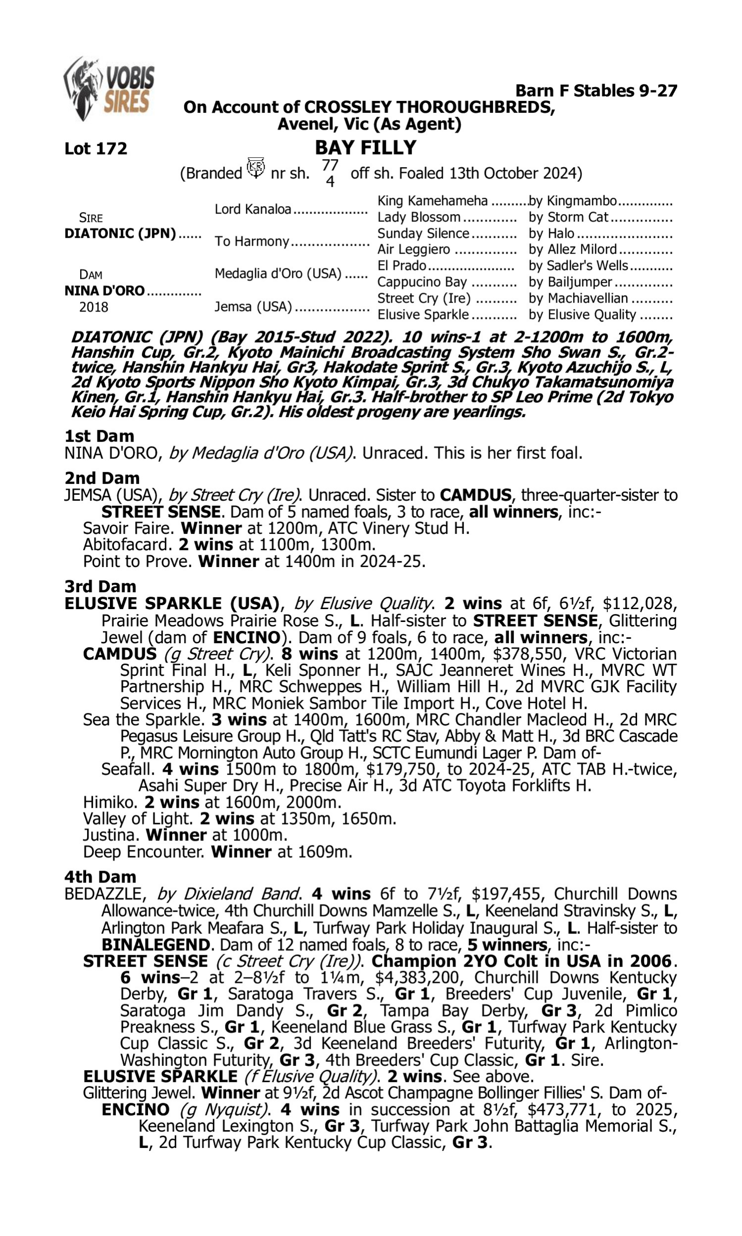 Lot 171 has pedigree updates since the release of the catalogue.