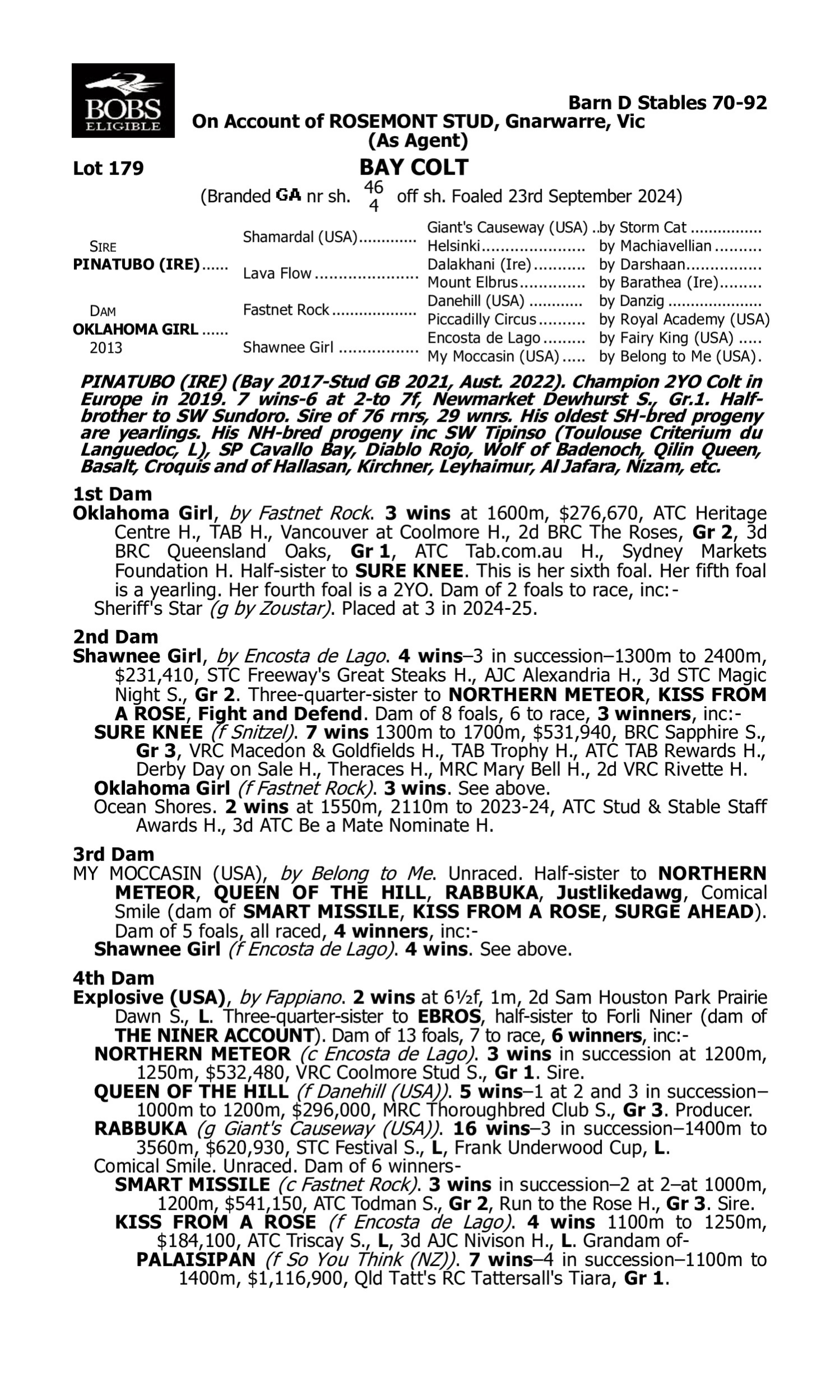 Lot 178 has pedigree updates since the release of the catalogue.