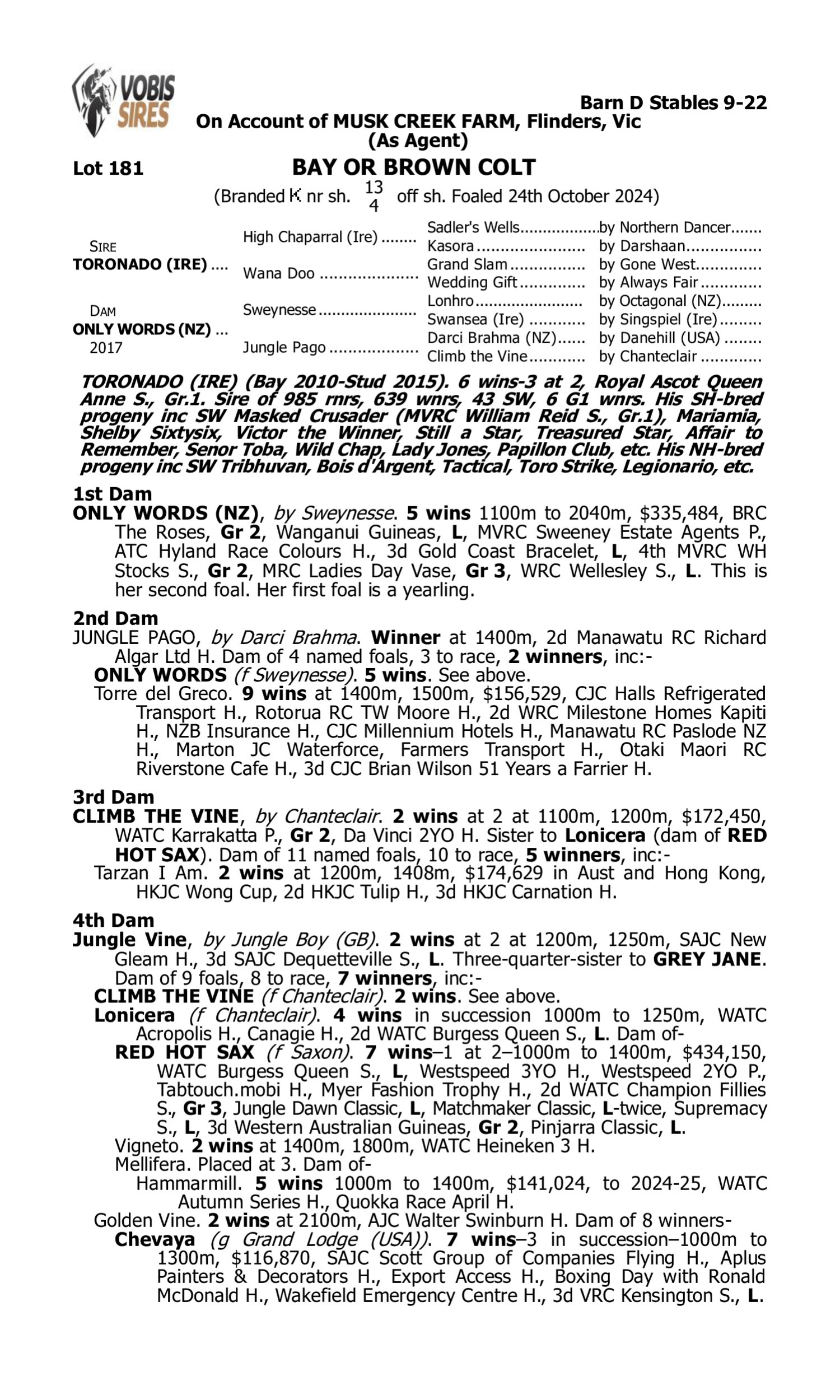 Pedigree for Lot 180 Yes Yes Yes - One Beauty