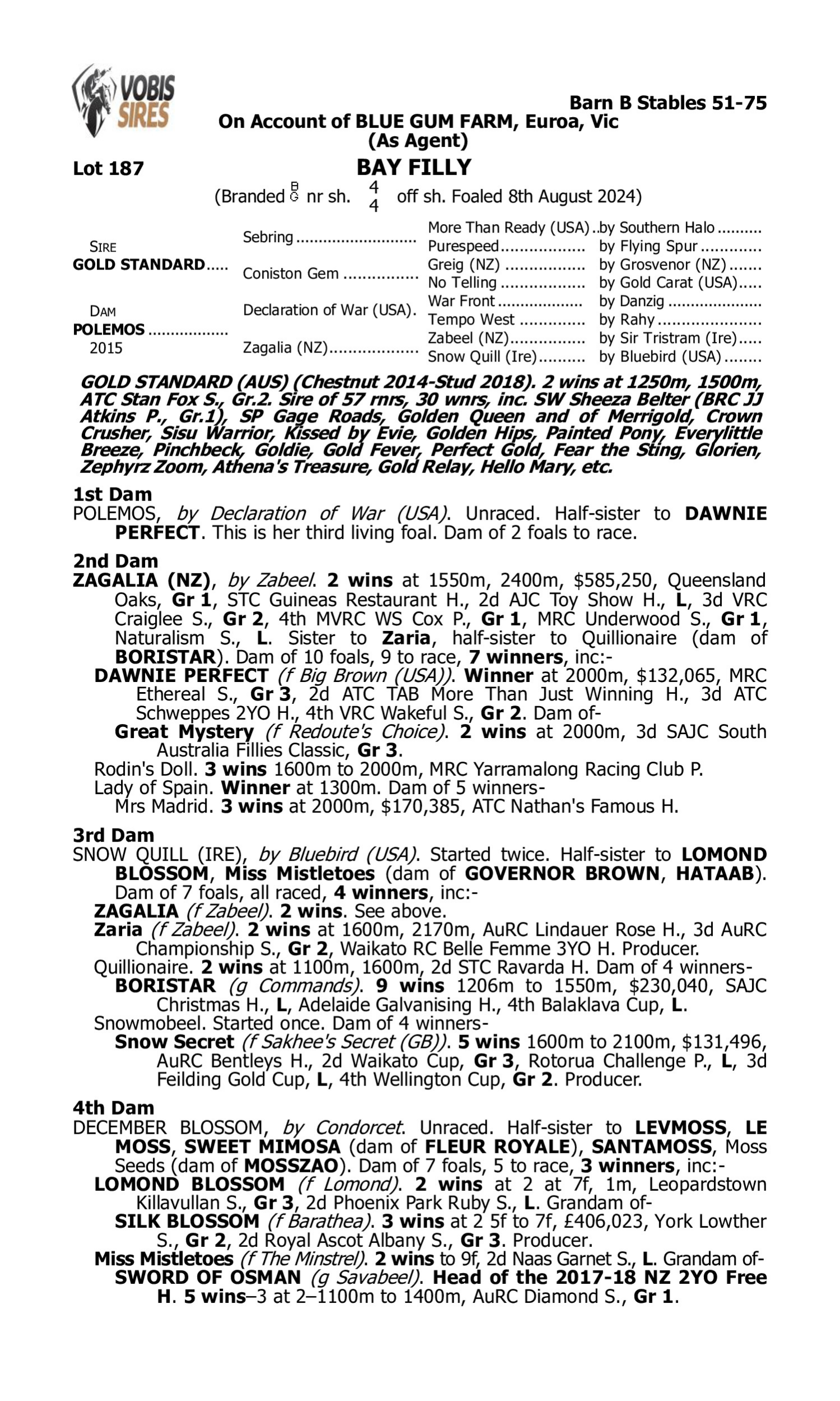 Pedigree for Lot 186 Trapeze Artist - Pickup the Pieces