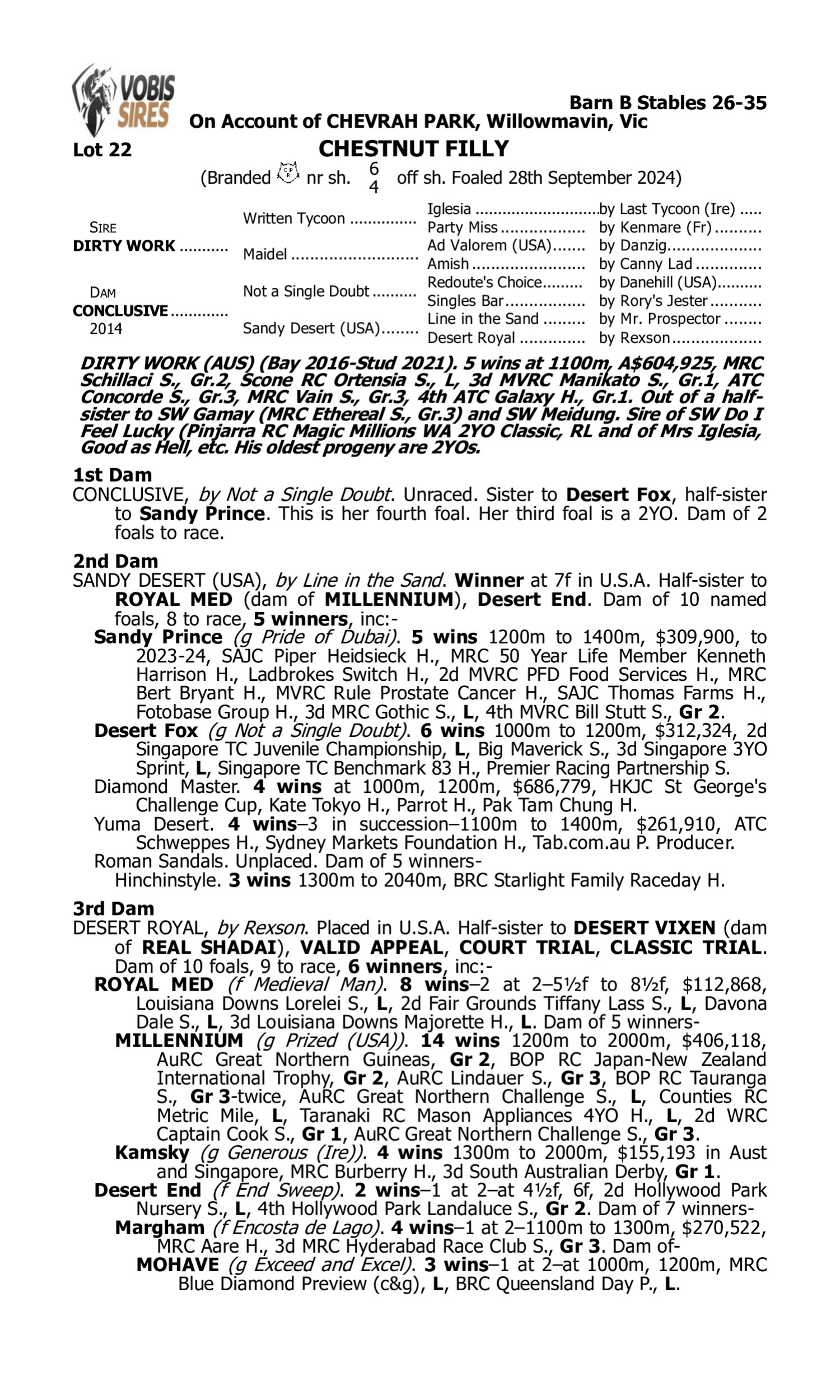 2nd Dam Voltage Point (2020.g. by Artie Schiller-Voltara, by More Than Ready-Duchess Cara). 2025-06-21 1st SAJC (Morphettville) Adelaide Galvanising Industries H. 3rd Dam Where's My Lunch (2018.g. by Zebedee-Duchess Cara, by Quest for Fame-Charismatic). 2025-06-26 1st Northam RC Afgri Equipment H.