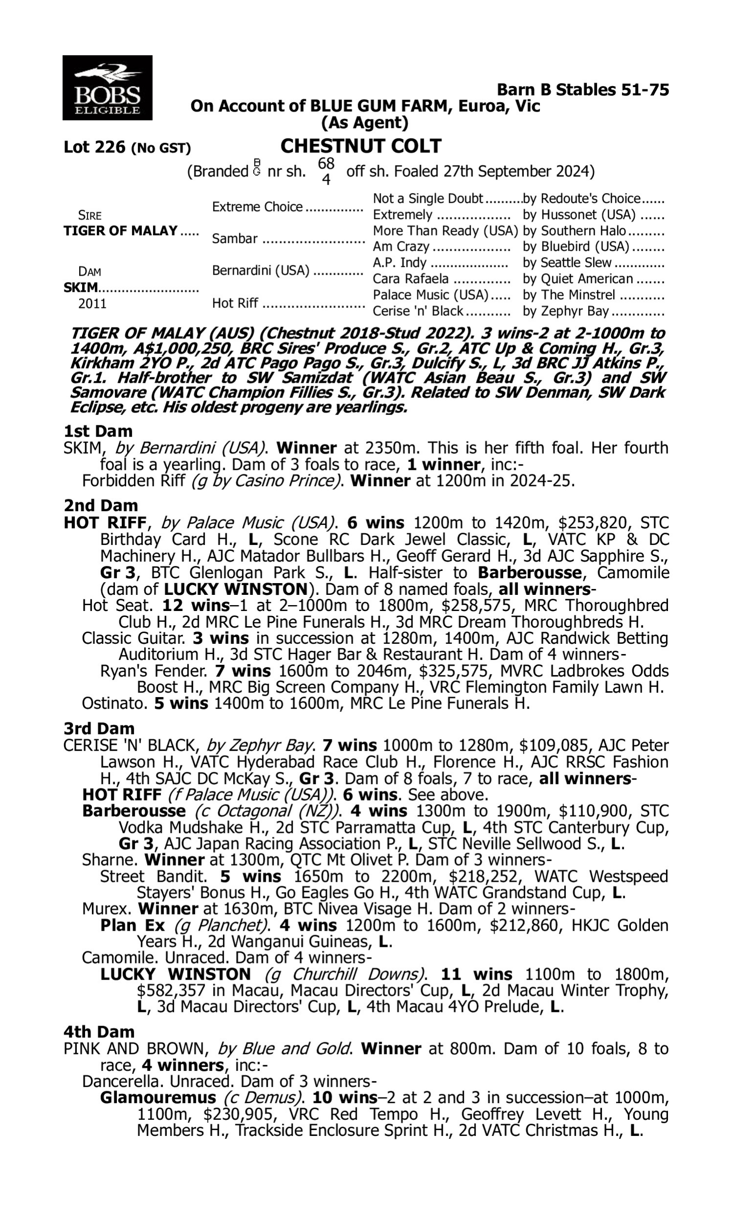 Pedigree for Lot 225 Toronado (IRE) - Sizzling Ace