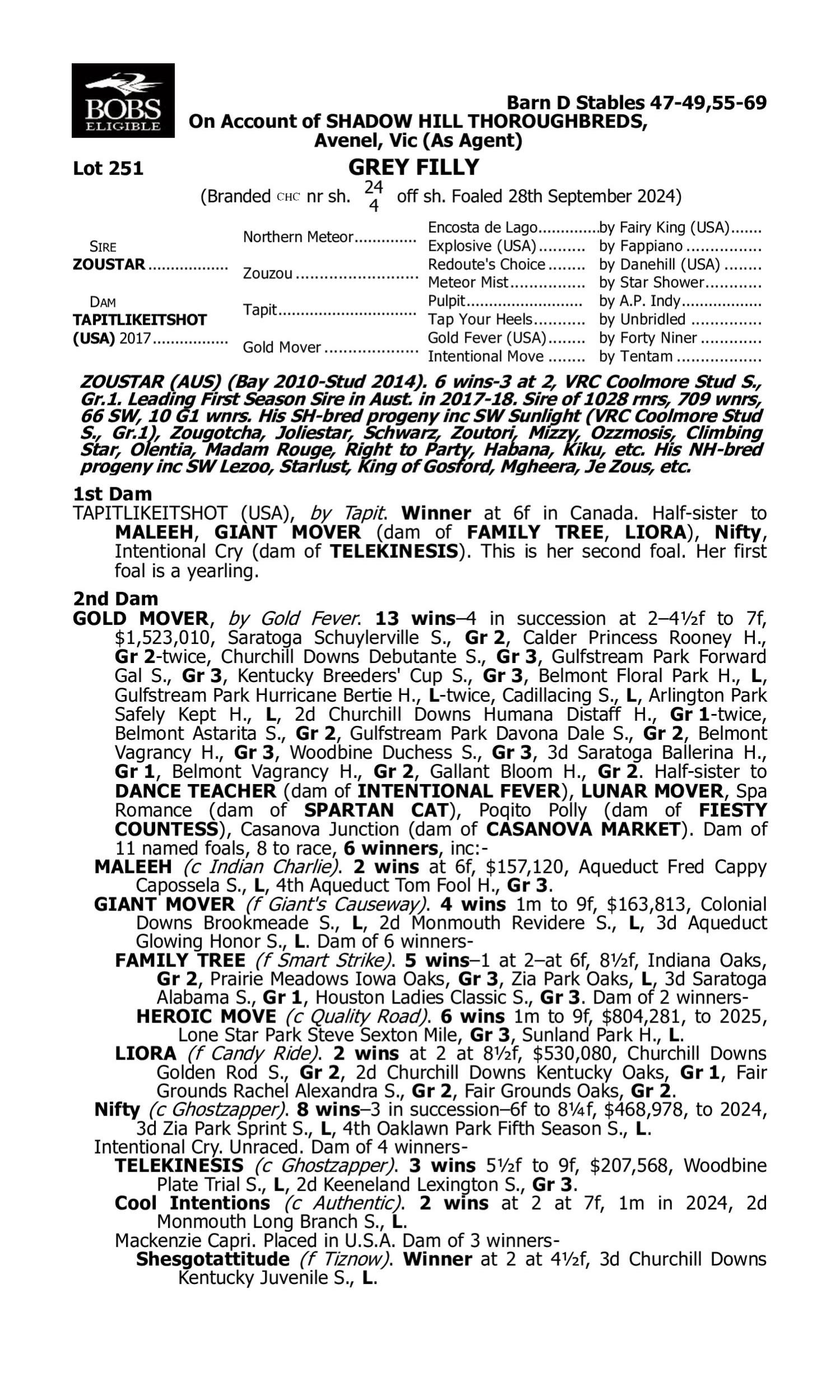 1st Dam Tango Jewel (2019.f. by Winning Rupert-Modern Etiquette, by Redoute's Choice-Tango Fire). 2025-07-09 2nd MRC (Sandown) Feel the Thrill H. Star Casino (2021.g. by Casino Prince-Contango Miss, by Congrats-Tango Fire). 2025-06-08 1st Port Augusta RC Rossigns and Multi Print Maiden P. 2025-06-22 1st Port Augusta RC Morris Pastoral H.