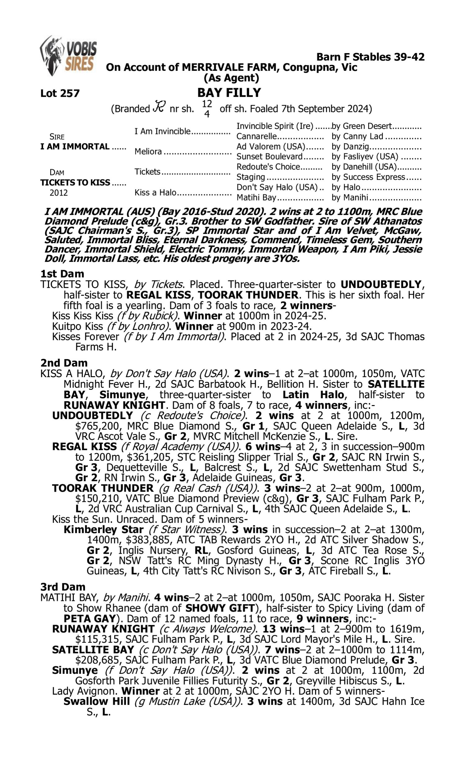 Pedigree for Lot 256 Spirit of Boom - Thuwaany