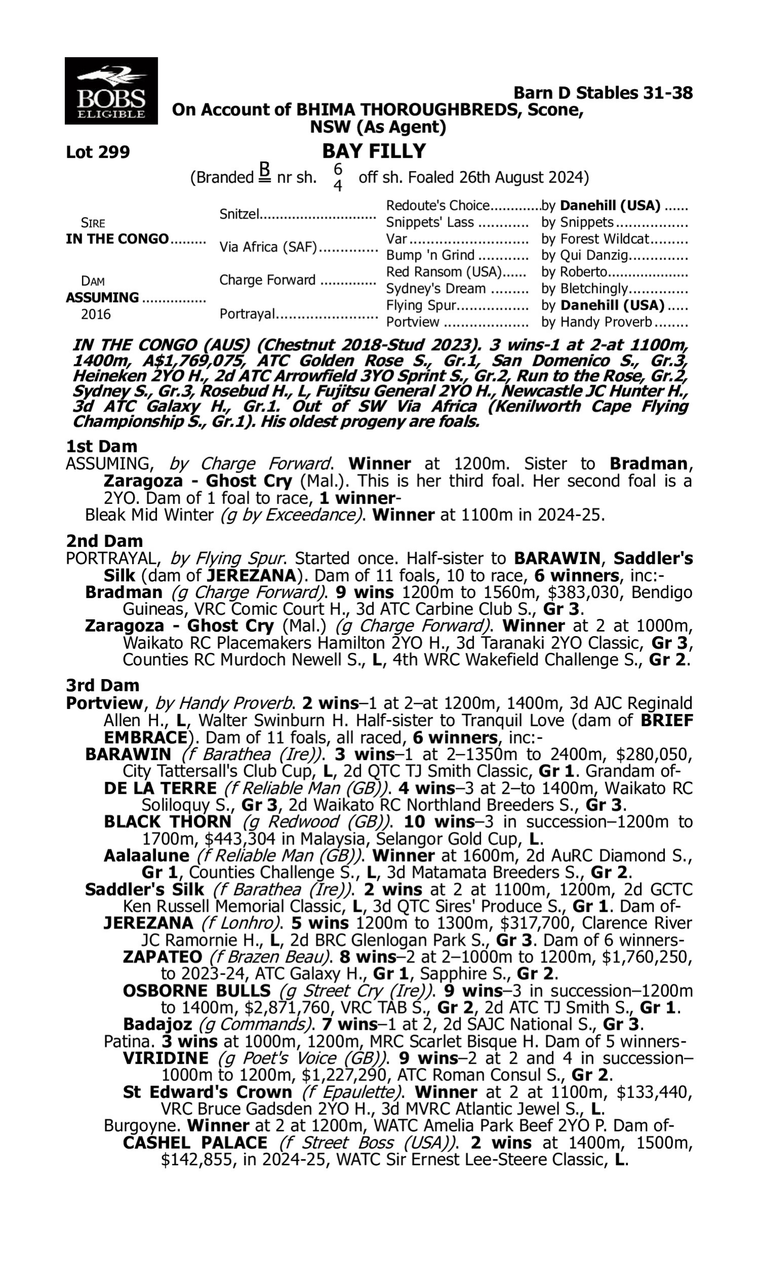 1st Dam Bombinate (2021.g. by Toronado-Asheerah, by Redoute's Choice-Rewaaya). 2025-06-21 1st Innisfail TC Cairns Hardware Maiden P. 2025-07-05 2nd Mareeba TC Benchmark 50 H. 2025-05-17 3rd Burdekin RC Hit 103.1 Maiden P. 2025-06-07 3rd Townsville TC IPD Maiden P. 3rd Dam Isti Star (2022.f. by Better Than Ready-Istiraaha, by Redoute's Choice-Nasmah). 2025-05-23 1st GCTC (Gold Coast) Magic Millions National 2YO Classic 2025-06-14 2nd BRC (Eagle Farm) Oxlade S. L OLENTIA (2019.f. by Zoustar-Mabkhara, by Anabaa-Bukhoor). 2025-06-28 3rd Qld Tatt's RC (Eagle Farm) Tattersall's Tiara Gr.1