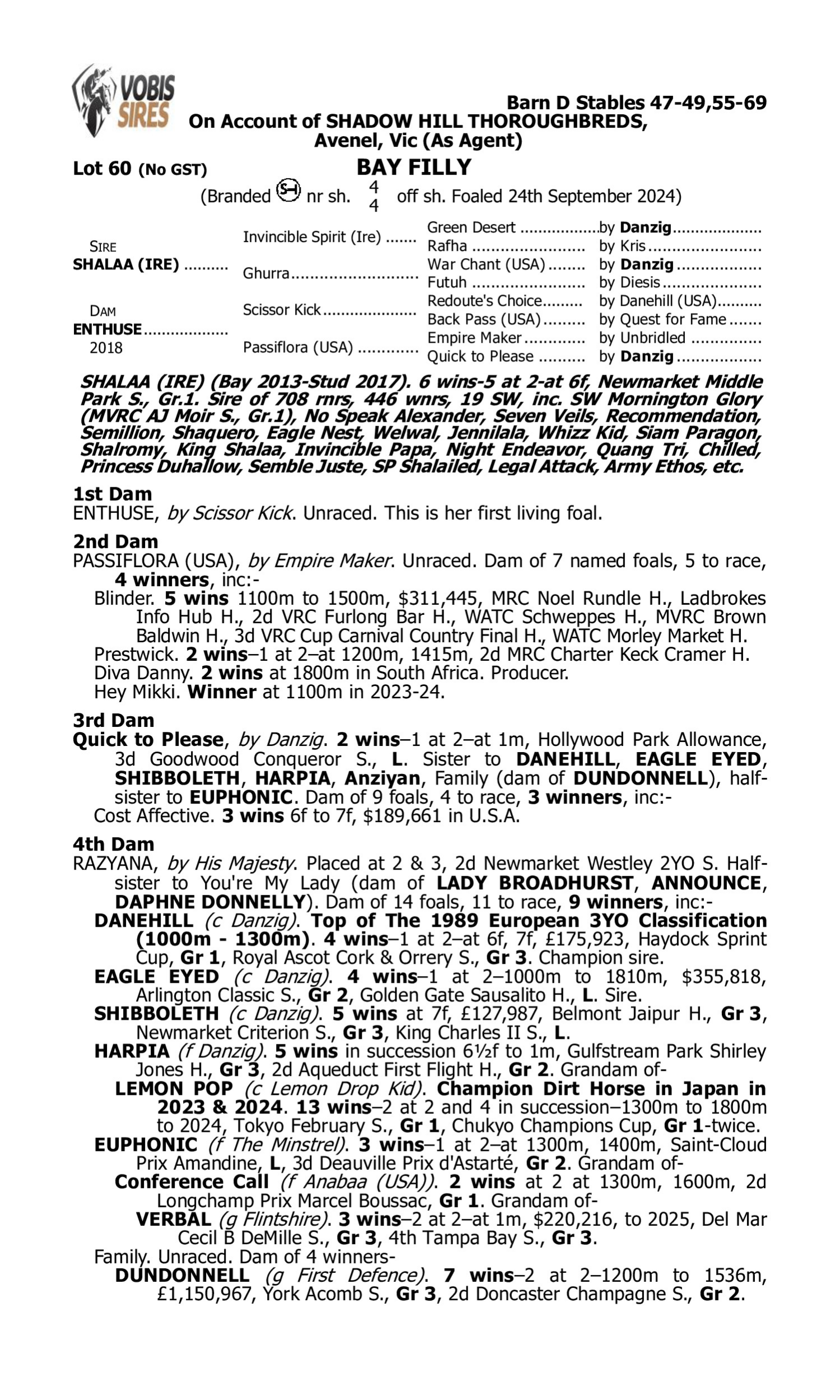 Lot 59 has pedigree updates since the release of the catalogue.
