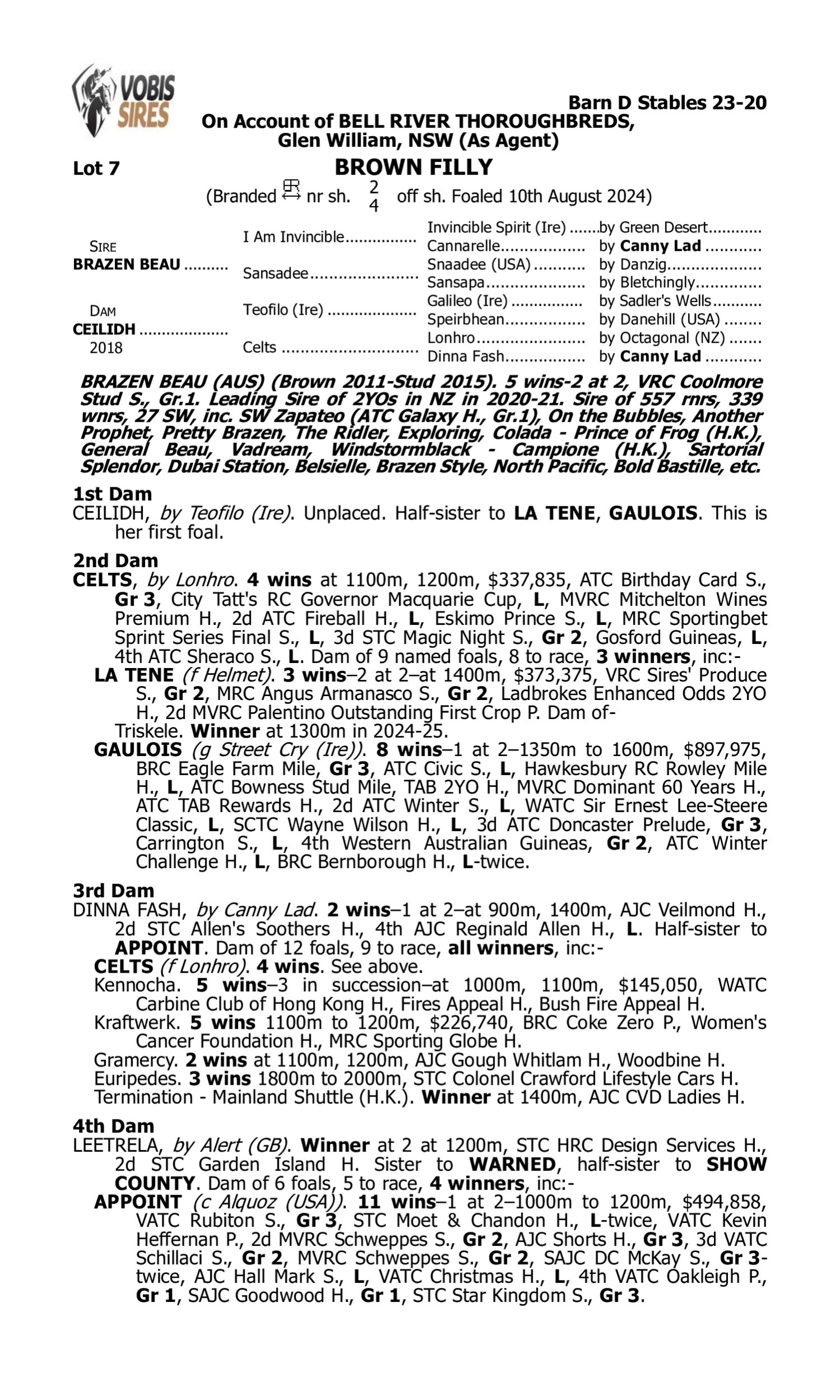 1st Dam FLOOZIE (2020.f. by Zoustar-Catchy, by Fastnet Rock-Cats Whisker). 2025-06-14 1st BRC (Eagle Farm) Dane Ripper S. Gr.2 2nd Dam Lulumon (2020.f. by Vancouver-For Lulu, by Fastnet Rock-Cats Whisker). 2025-06-21 1st ATC (Randwick) Asahi Super Dry H. 3rd Dam CLEO CAT (2020.f. by American Pharoah-Angel Face, by Fastnet Rock-Perfect Halo). 2025-05-31 2nd MRC (Caulfield) Bel Esprit S. L 2025-07-12 4th MRC (Caulfield) Sir John Monash S. Gr.3