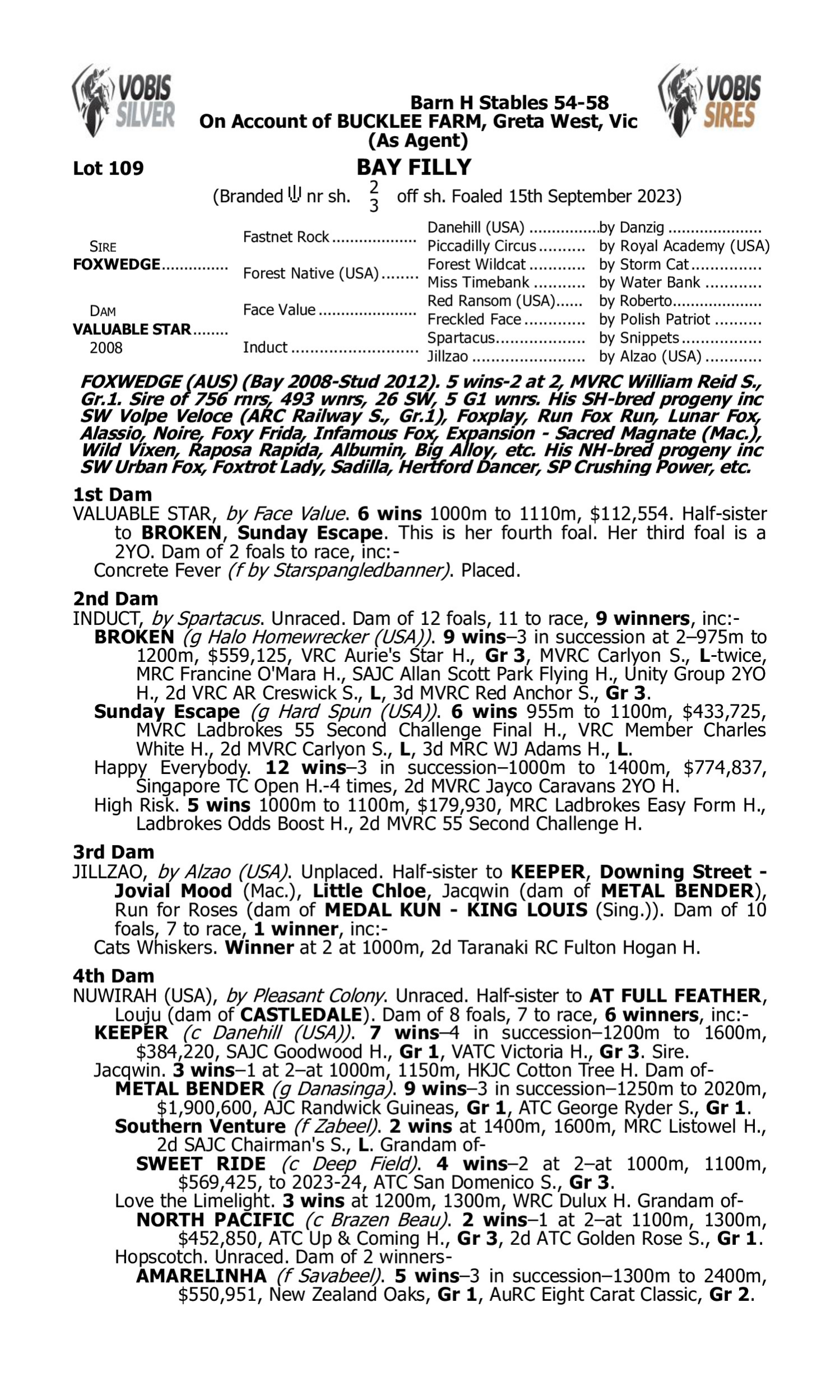 Pedigree for Lot 108 Trapeze Artist - Upscale (NZ)
