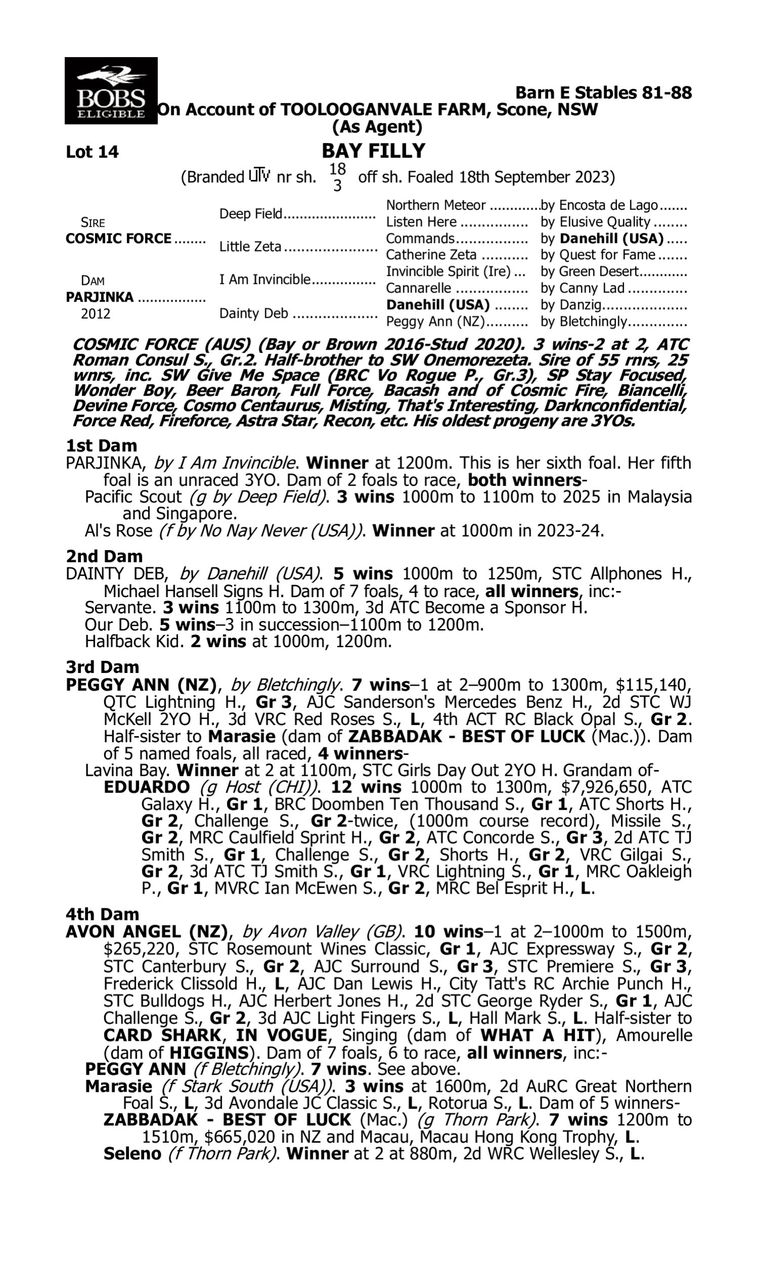Pedigree for Lot 13 Fiorente (IRE) - Panda's Rainbow