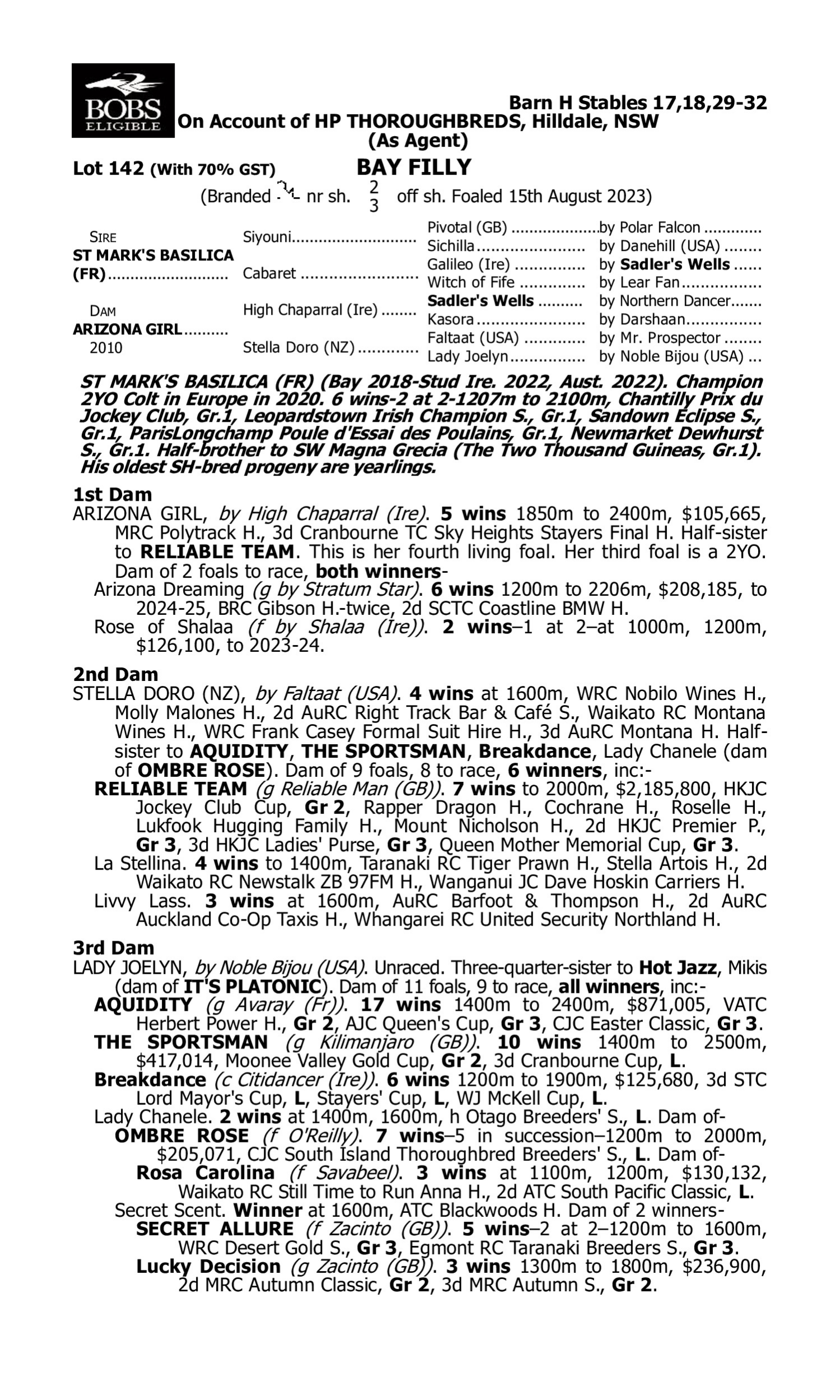 Pedigree for Lot 141 D'Argento - Anatolian Charm (NZ)