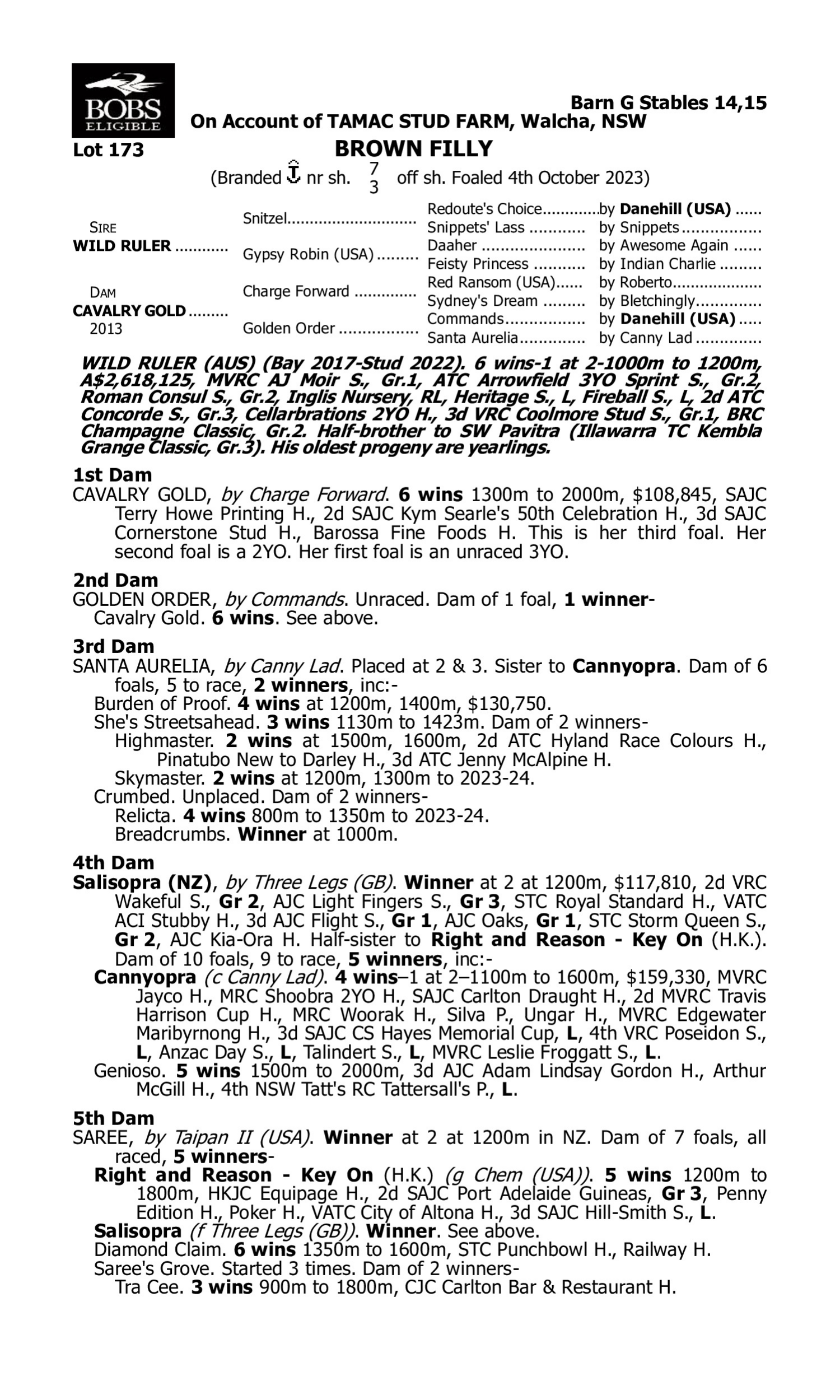 Lot 172 has pedigree updates since the release of the catalogue.