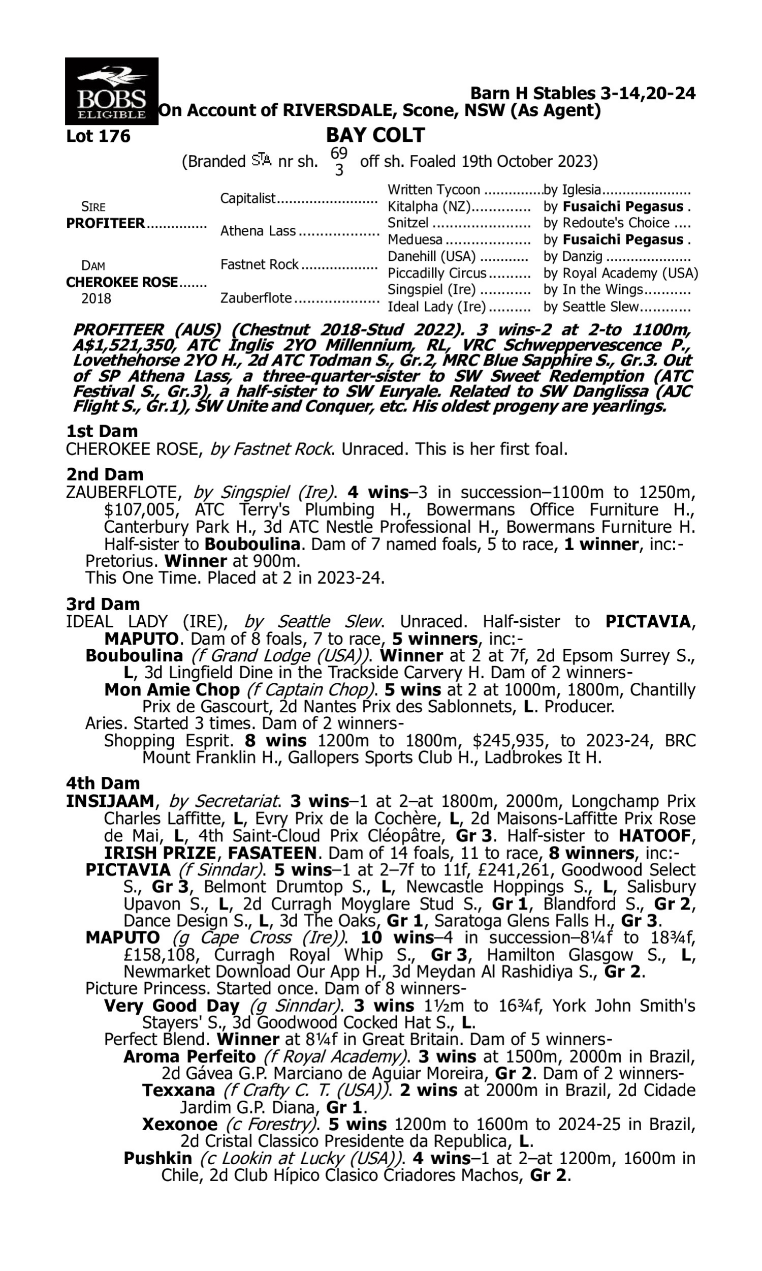 Lot 175 has pedigree updates since the release of the catalogue.