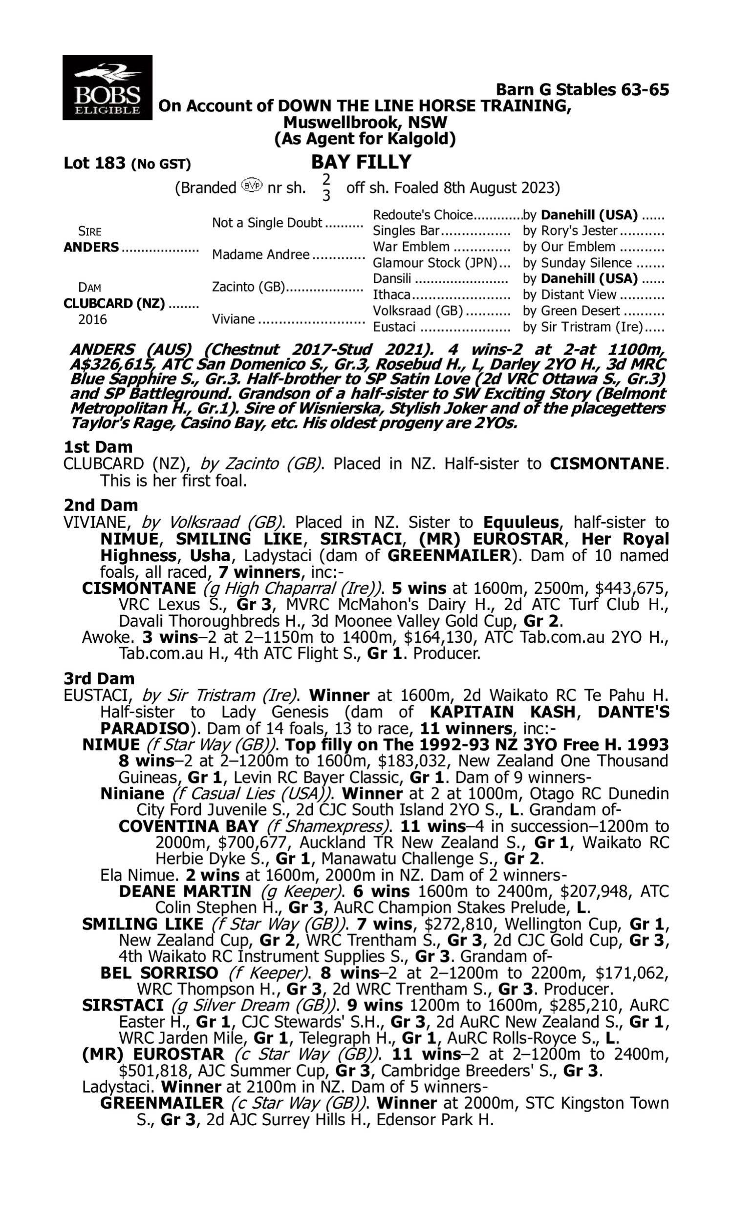 Pedigree for Lot 182 Star Witness - Cliffette