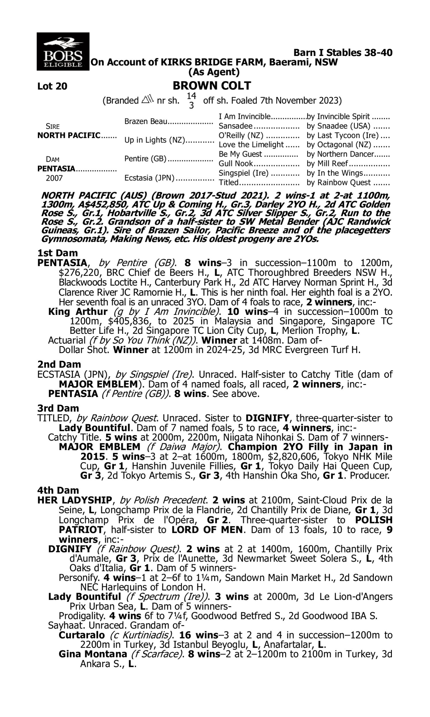 Pedigree for Lot 19 D'Argento - Pendolin (NZ)