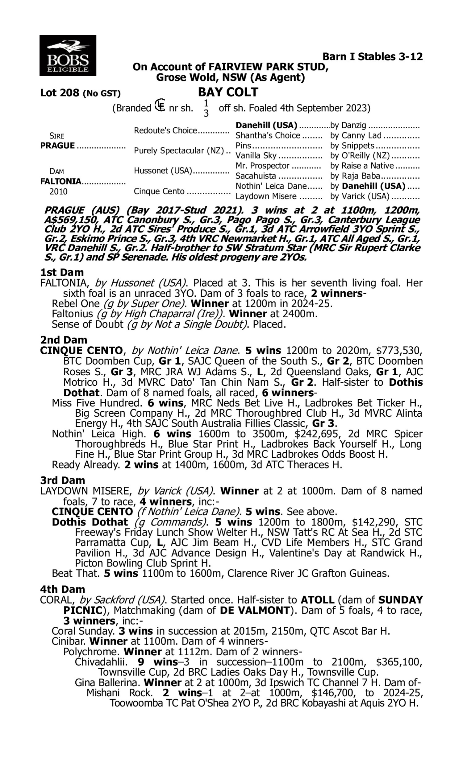 Pedigree for Lot 207 Hellbent - Fairlighting