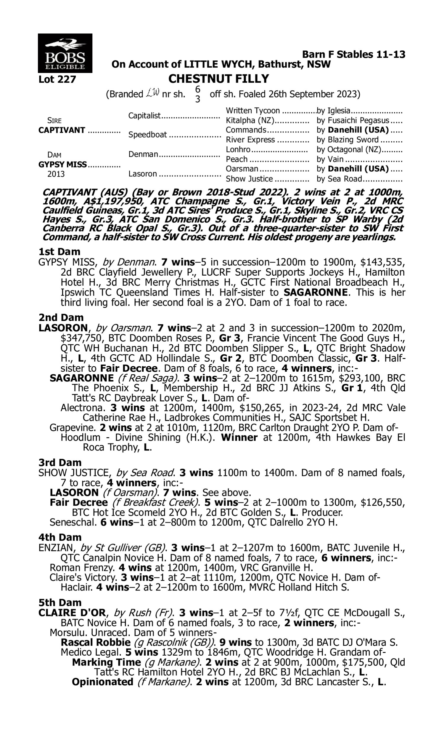 Pedigree for Lot 226 Yes Yes Yes - Gregorian Chant (NZ)