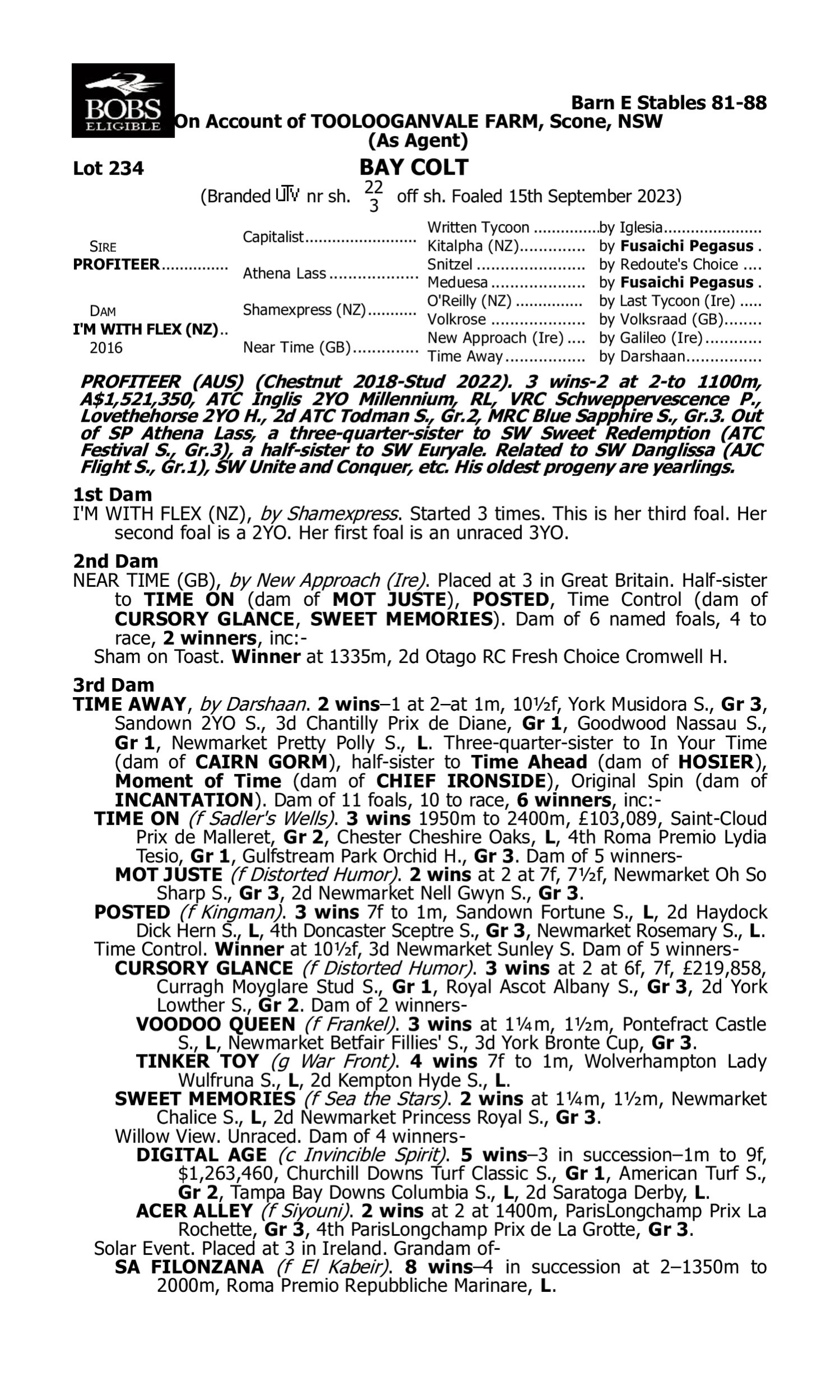 Lot 233 has pedigree updates since the release of the catalogue.