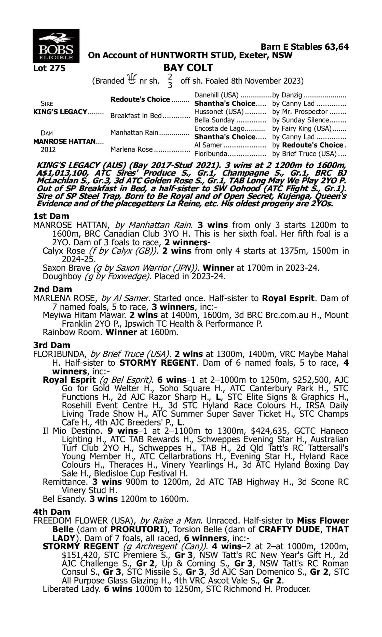 Pedigree for Lot 274 Acrobat - Mannya (NZ)