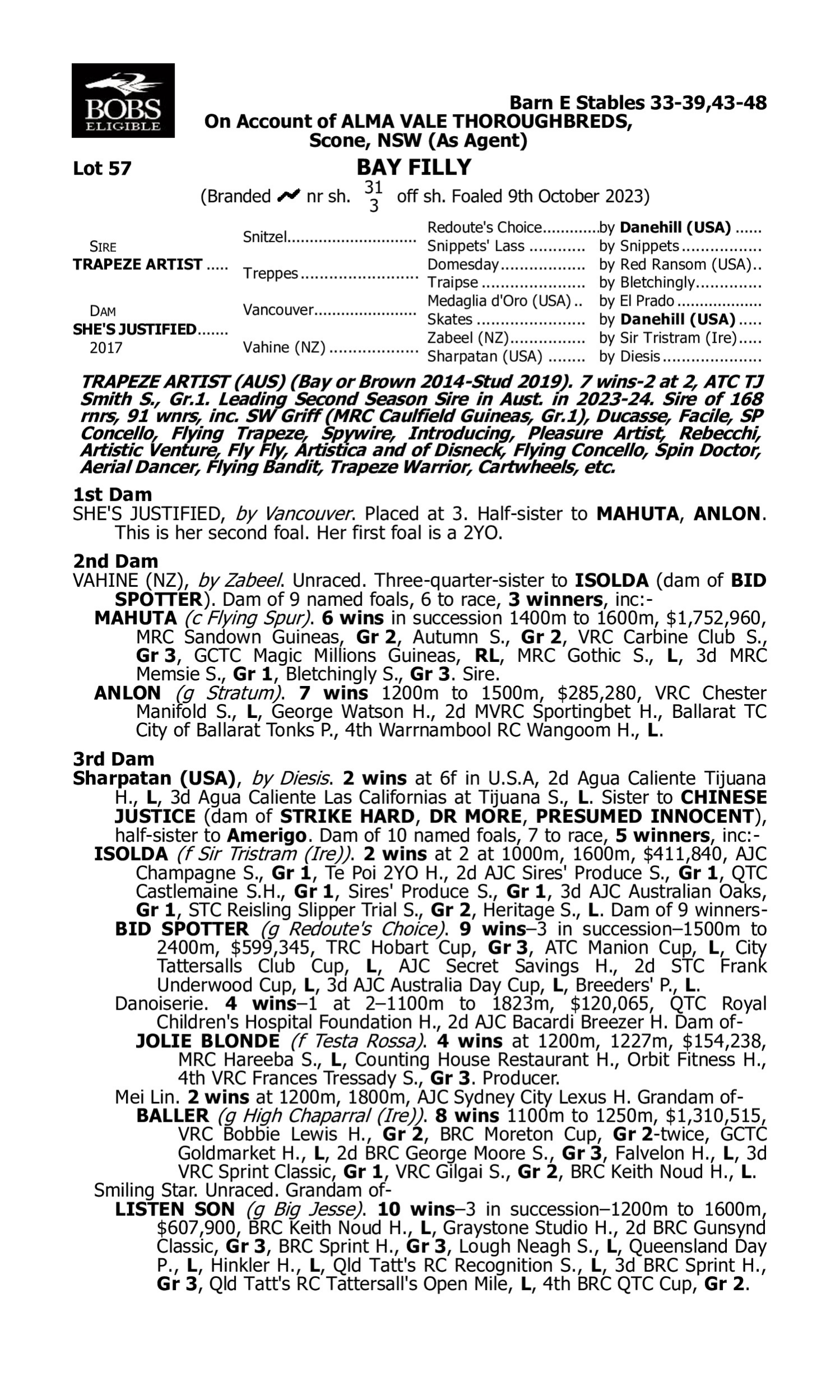 Pedigree for Lot 56 Acrobat - Sharp Tune