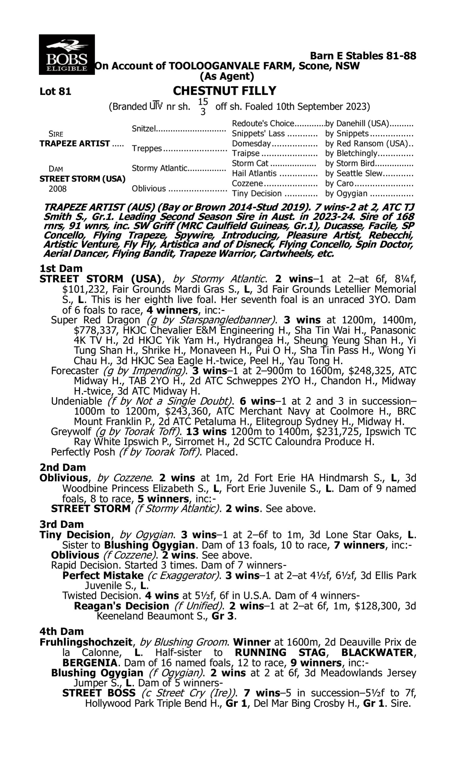 Pedigree for Lot 80 Fierce Impact (JPN) - Stockist (NZ)