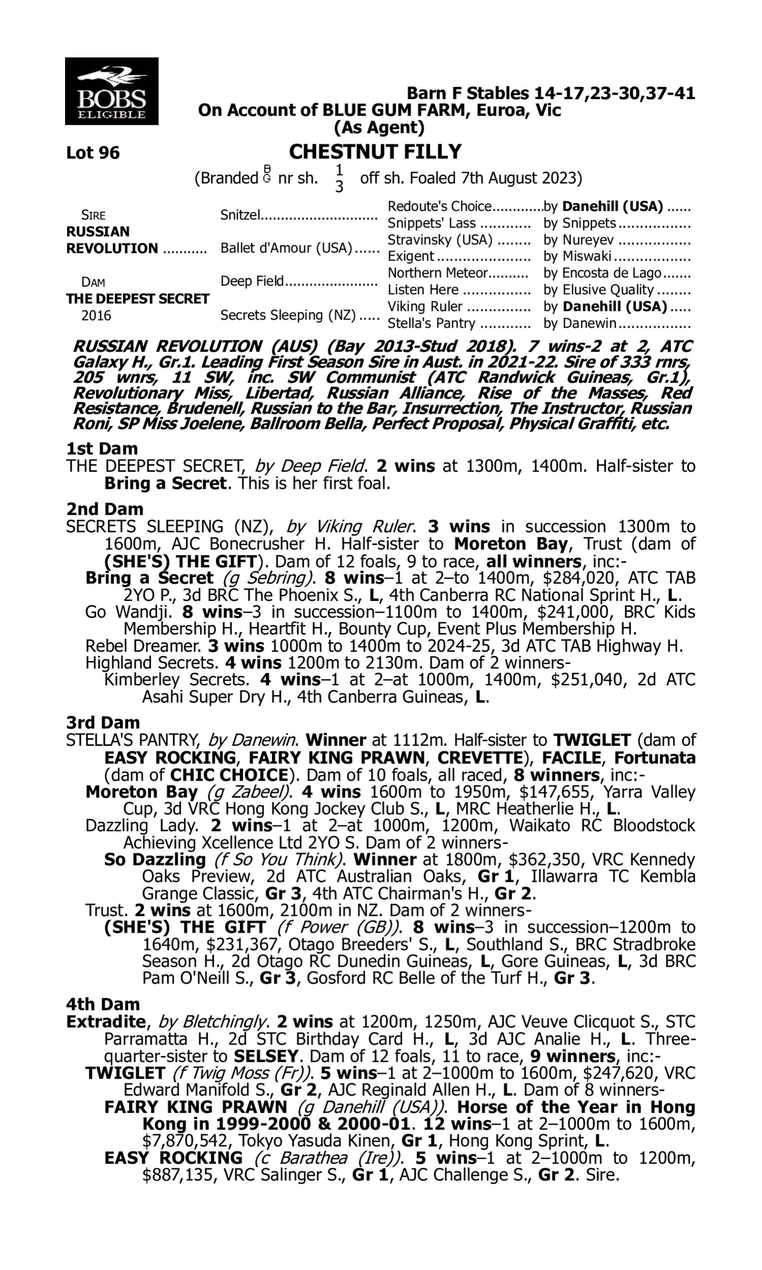 Pedigree for Lot 95 Saxon Warrior (JPN) - Tenacity Miss