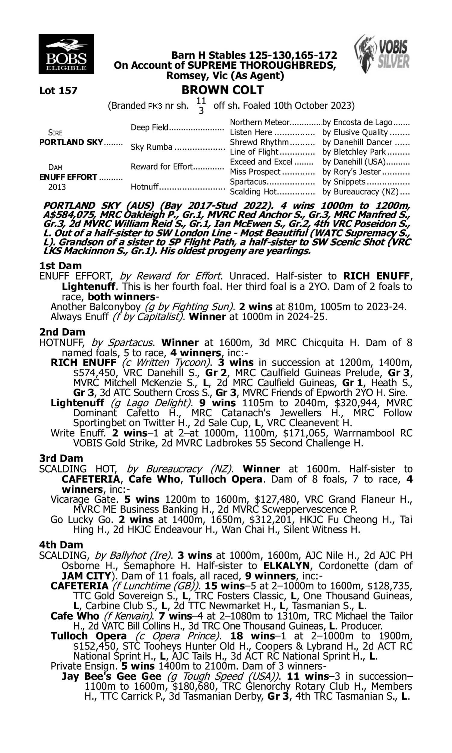 Pedigree for Lot 156 Snitzel - Ellerslie Lace (FR)