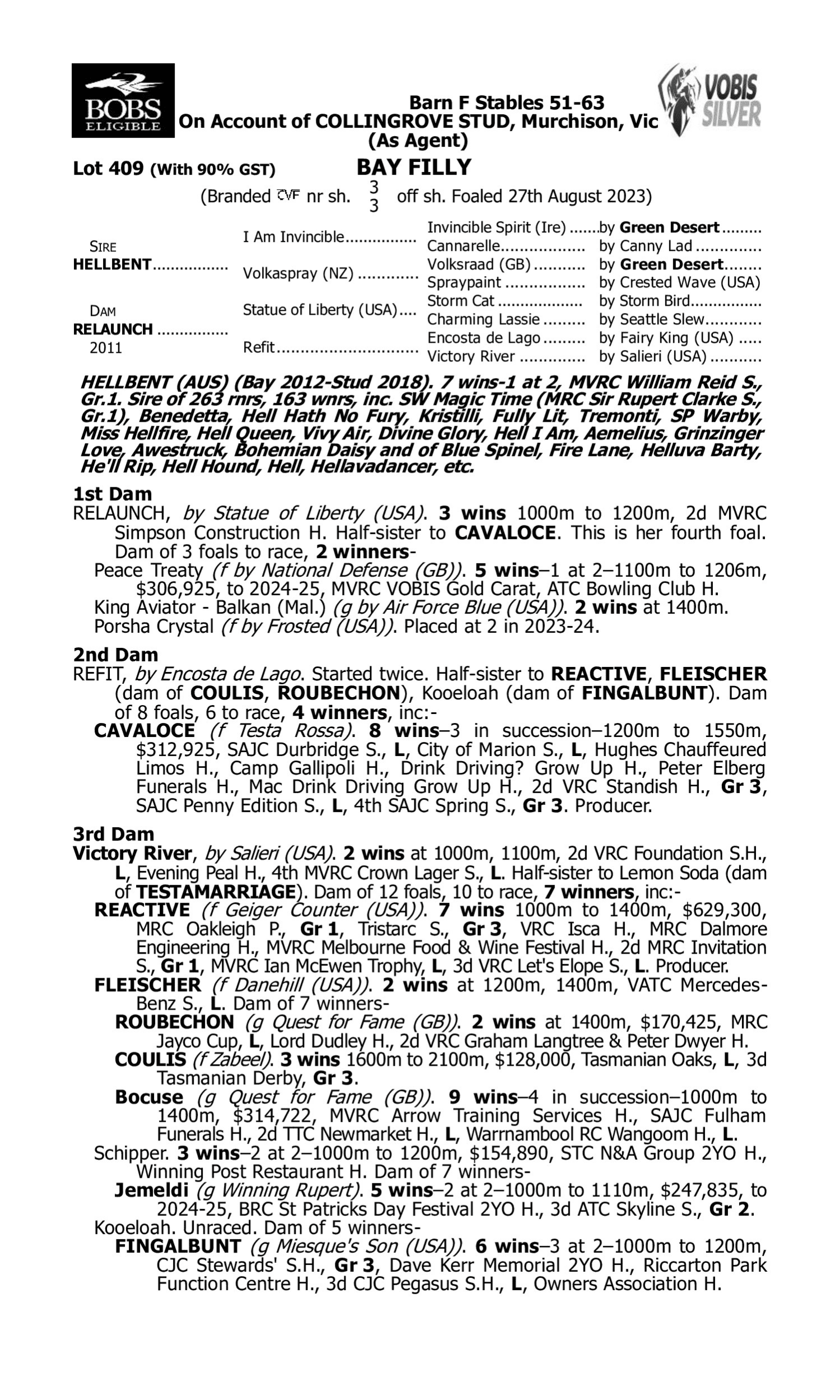 Pedigree for Lot 408 Tagaloa - Rekindled Choice