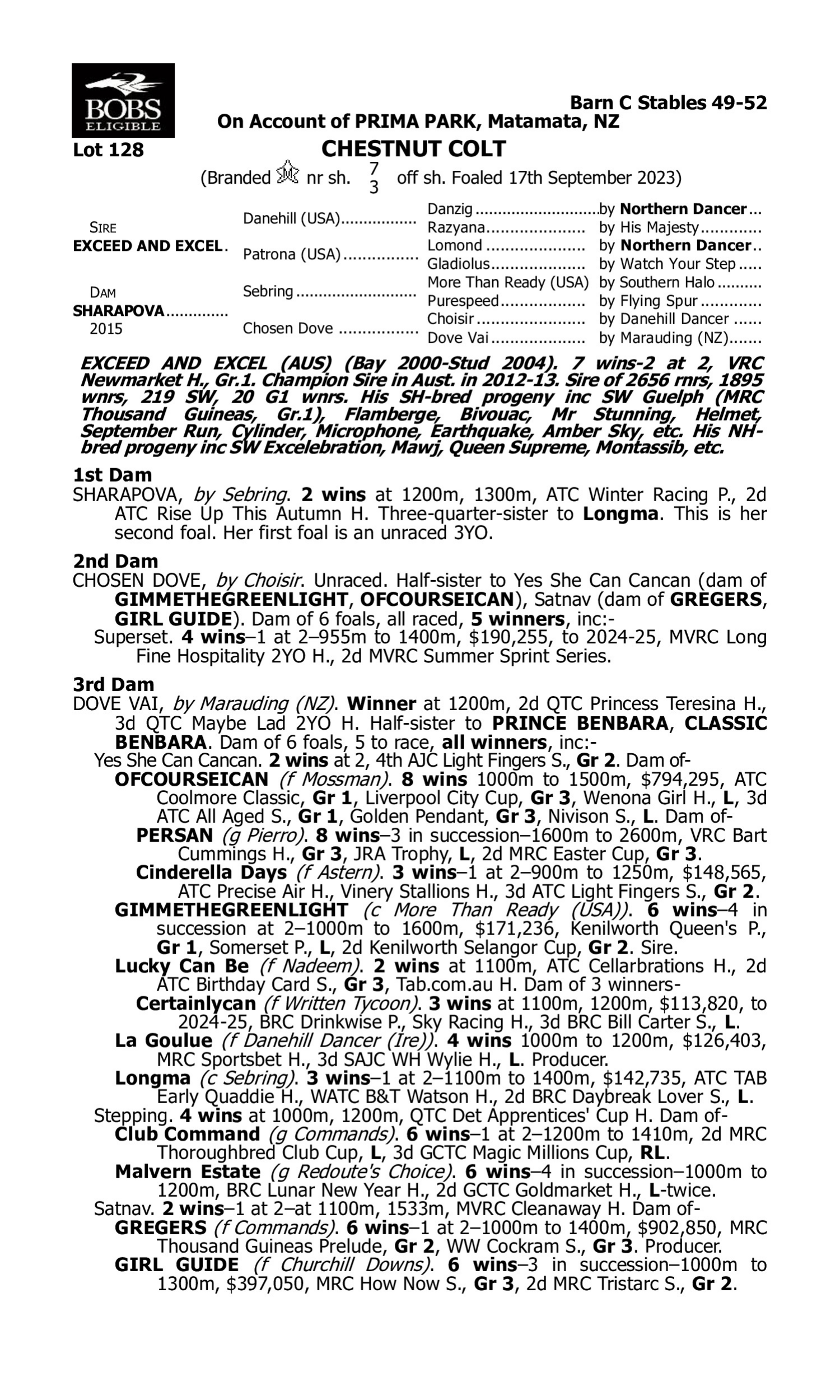 Recent Australasian-bred G1 winners that were the first foal of their dam include Switzerland, Ka Ying Rising, Celestial Legend, Bella Nipotina, Tuvalu, Jacquinot, Tagaloa etc