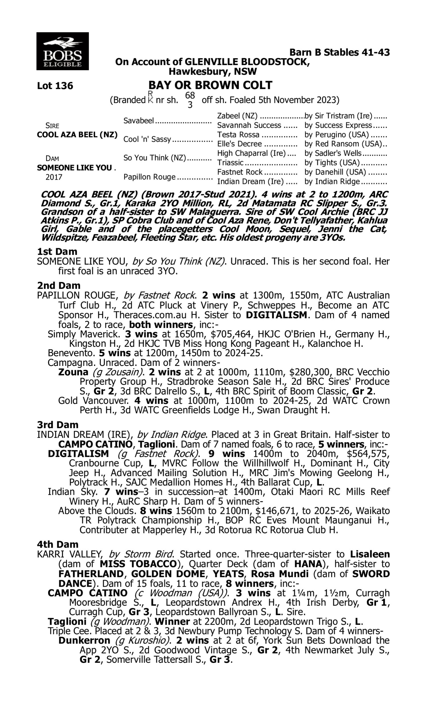Recent Australasian-bred G1 winners out of unraced mares include Linebacker, Marhoona, Nepotism, Gringotts, Devil Knight, Antino, Ceolwulf, Celestial Legend etc