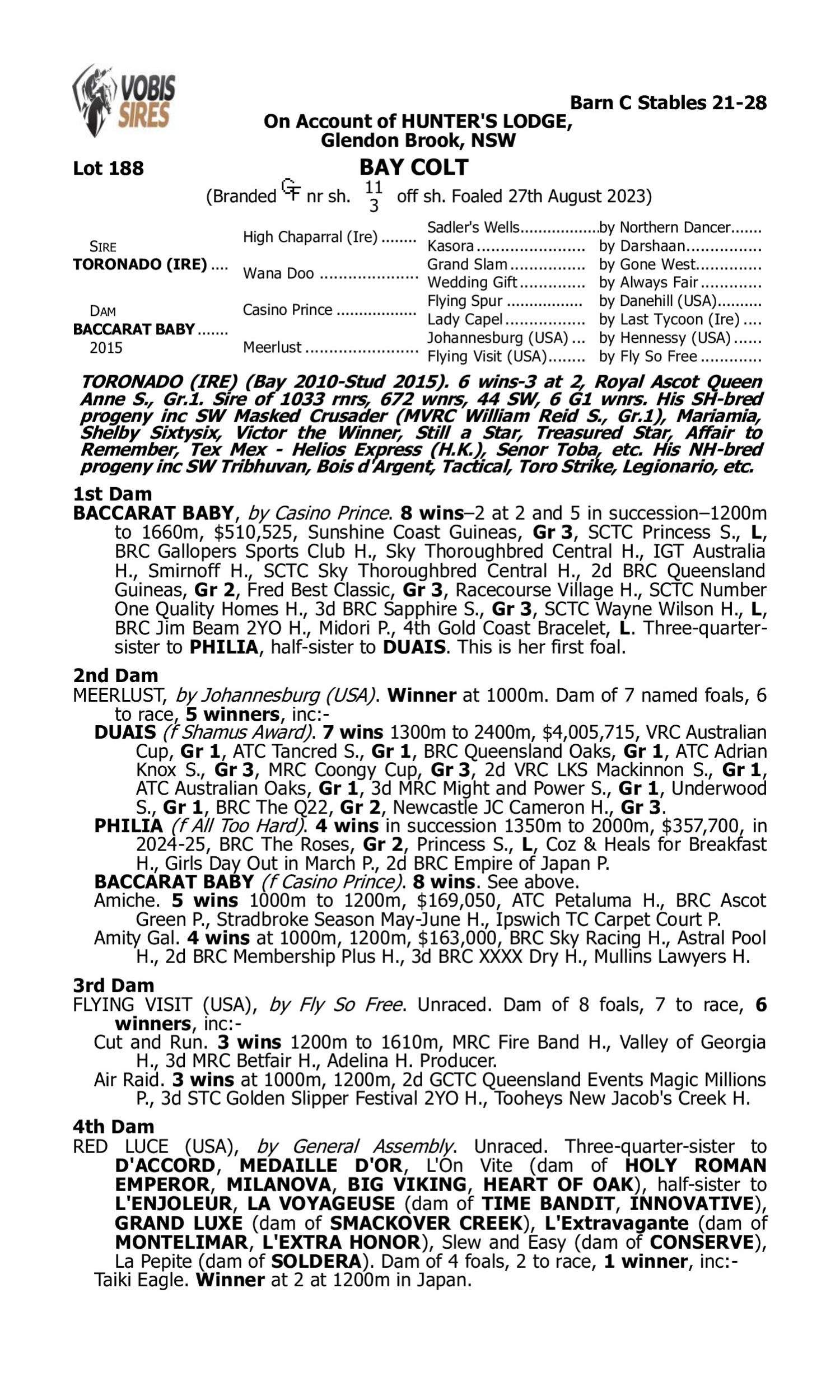 3rd Dam Gerringong (2021.f. by Blue Point-This Time Bridie, by More Than Ready-Deedra). 2025-09-27 2nd ATC (Rosehill) Golden Pendant Gr.2 2025-08-30 4th MRC (Caulfield) WW Cockram S. Gr.3 2025-09-13 4th VRC (Flemington) Tontonan S. L