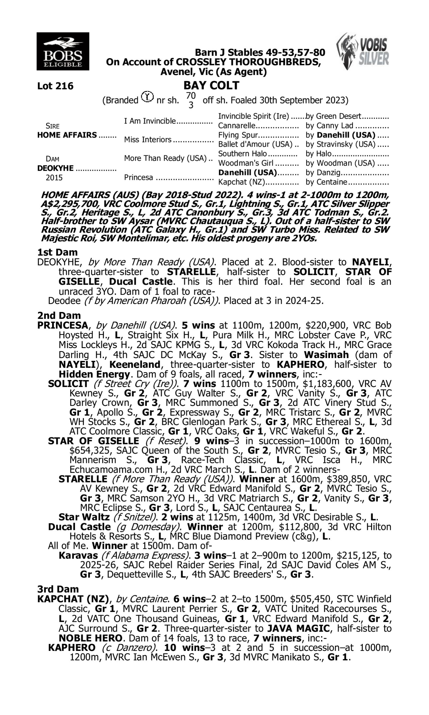 1st Dam Fetes des Meres (2021.f. by Brazen Beau-De Sea Eagle, by Flying Spur-De Jetcat). 2025-10-03 1st Dubbo TC Casey Nestor Farrier H. 2025-09-07 2nd Mudgee DRC Black Nugget Cup 2025-09-02 3rd Scone RC Inglis H.