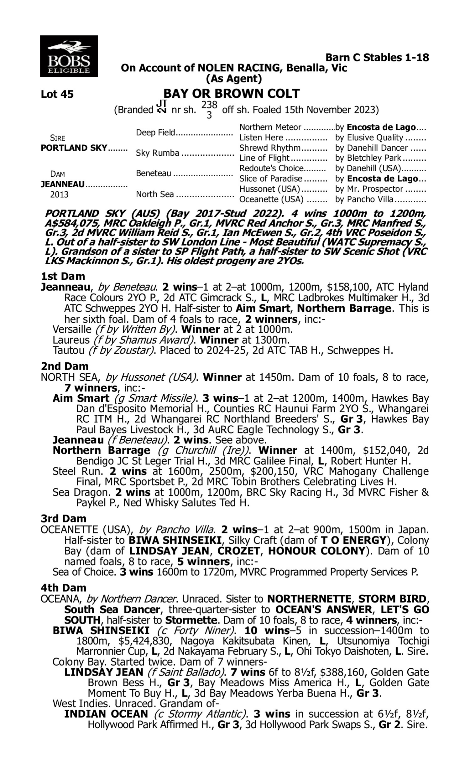 2nd Dam Tosen Impact (2020.g. by Tosen Stardom-Charleston Lady, by Hurricane Run-Dance Lively). 2025-09-08 1st Tatura RC Tyrepower Shepparton Maiden P.