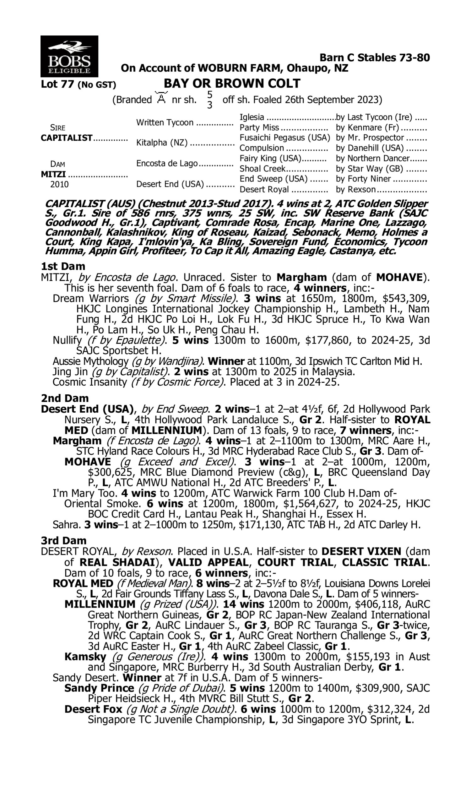 1st Dam Cosmic Vixen (2021.f. by Cosmic Force-Miss Vixen, by Foxwedge-Kirvinsky). 2025-10-14 1st Ballarat TC Global Turf Maiden P. 3rd Dam SHE'S BULLETPROOF (2020.f. by Shooting to Win-Offshore Sham, by Shamardal-Staten Island). 2025-10-11 1st MRC (Caulfield) Northwood Plume S. Gr.3