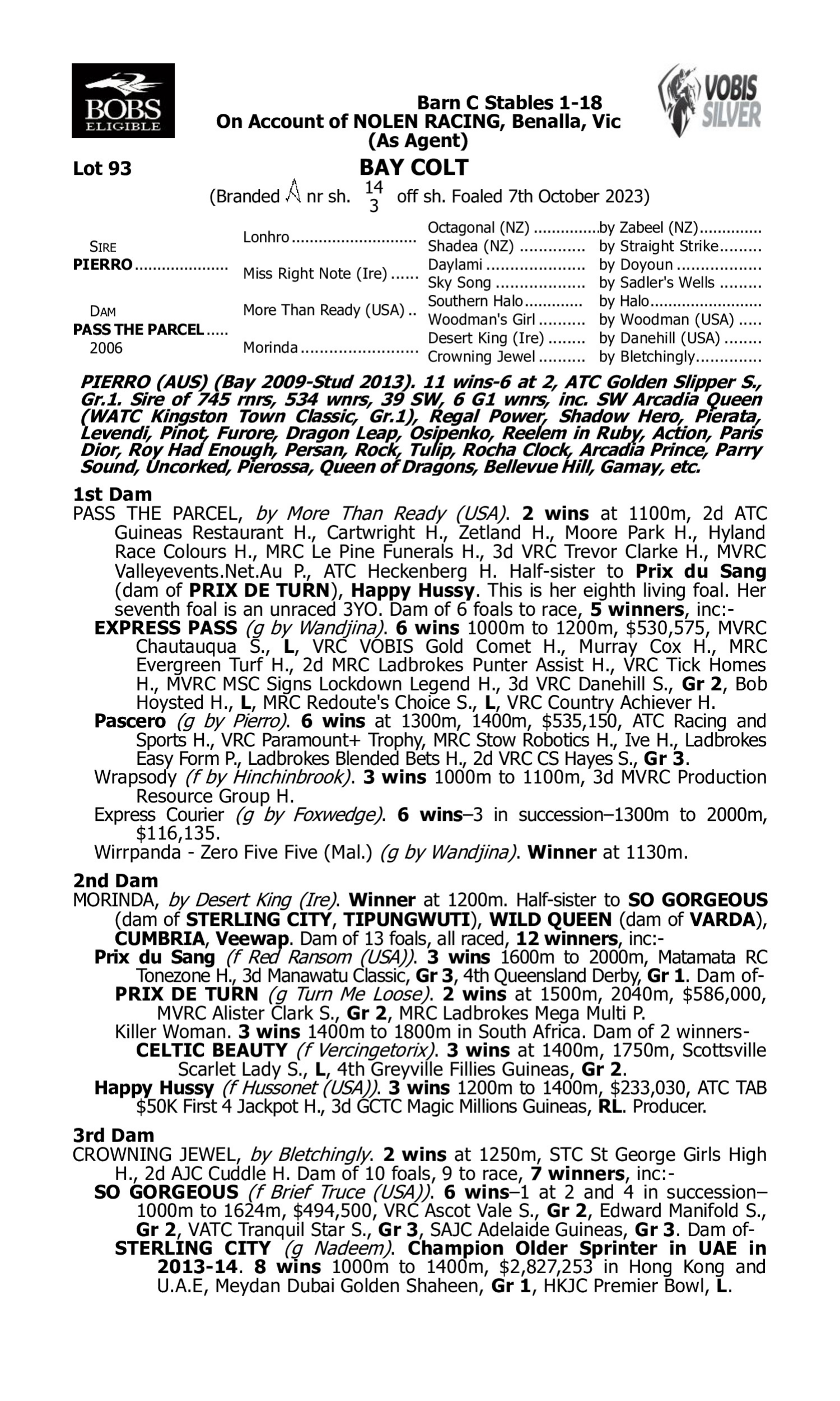 1st Dam Caxton Lass (2020.f. by Capitalist-Our Pride and Joy, by Canny Lad-Mica's Pride). 2025-10-11 1st GCTC (Gold Coast) CMAA Anniversary H. 2025-10-24 3rd SCTC (Sunshine Coast) Gordon's H. Uchi (2020.f. by Performer-Brumbies Magic, by Fastnet Rock-Our Pride and Joy). 2025-10-11 1st Cunnamulla DDRC Shearers Mug H. 3rd Dam CHARM STONE (2020.f. by I Am Invincible-Najoom, by Northern Meteor-Charlety Star). 2025-09-26 1st MVRC (Moonee Valley) Manikato S. Gr.1 Tardelli (2021.c. by I Am Invincible-Pierro Moss, by Pierro-Upon This Rock). 2025-09-20 1st Auckland TR Eagle Technology H. Naifah (2022.f. by I Am Invincible-Najmah, by Snitzel-Najoom). 2025-10-23 1st Hawkesbury RC De Bortoli Wines Maiden H.