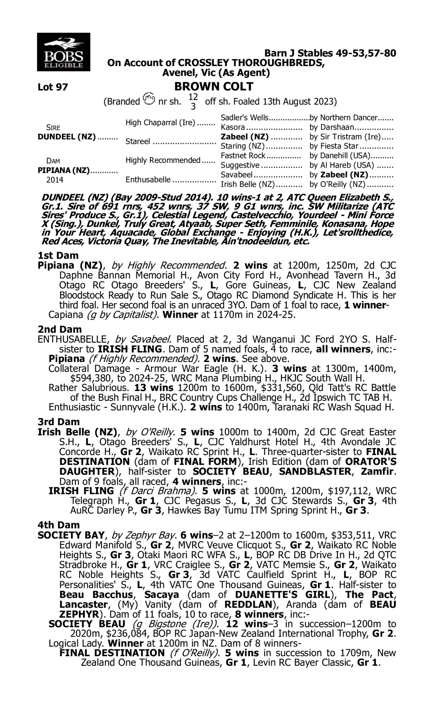 Pedigree for Lot 96 Zoustar - Perfect Gem (NZ)