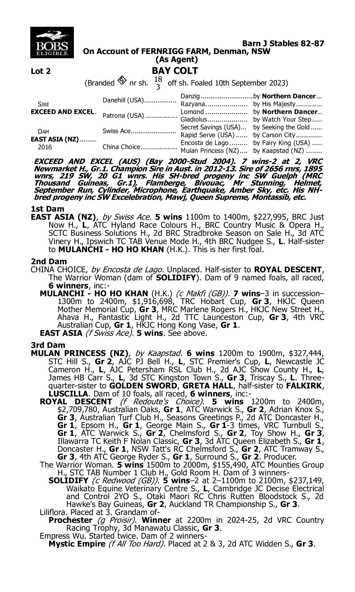 Recent Australasian-bred G1 winners that were the second foal of their dam include Lucky Sweynesse, Invincible Sage, Militarize, Stay Inside, Portland Sky, Private Eye, Home Affairs, King’s Legacy etc