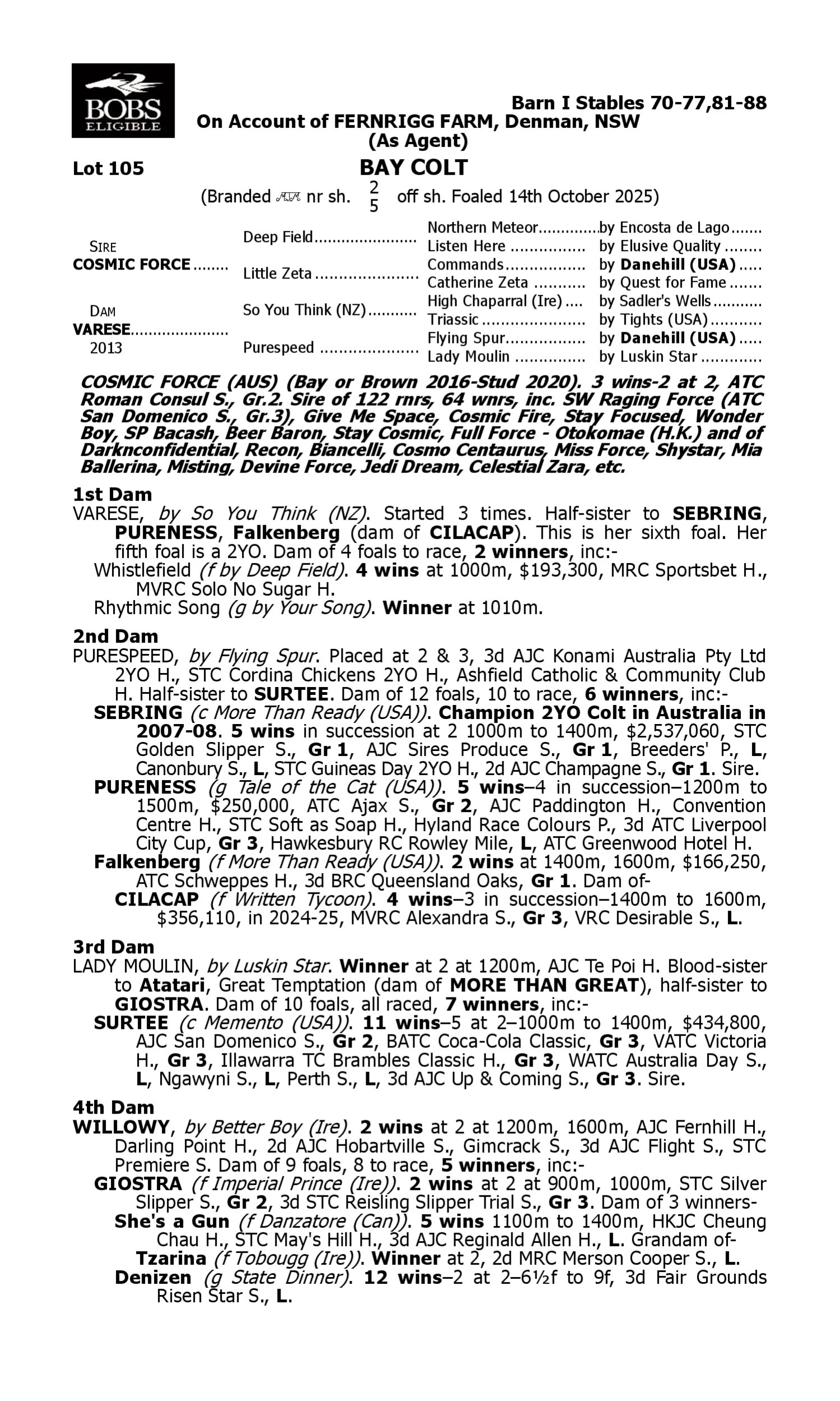Lot 104 has pedigree updates since the release of the catalogue.