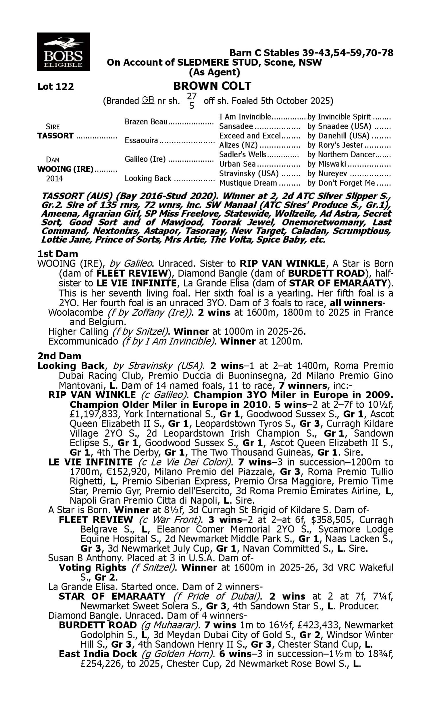 Lot 121 has pedigree updates since the release of the catalogue.