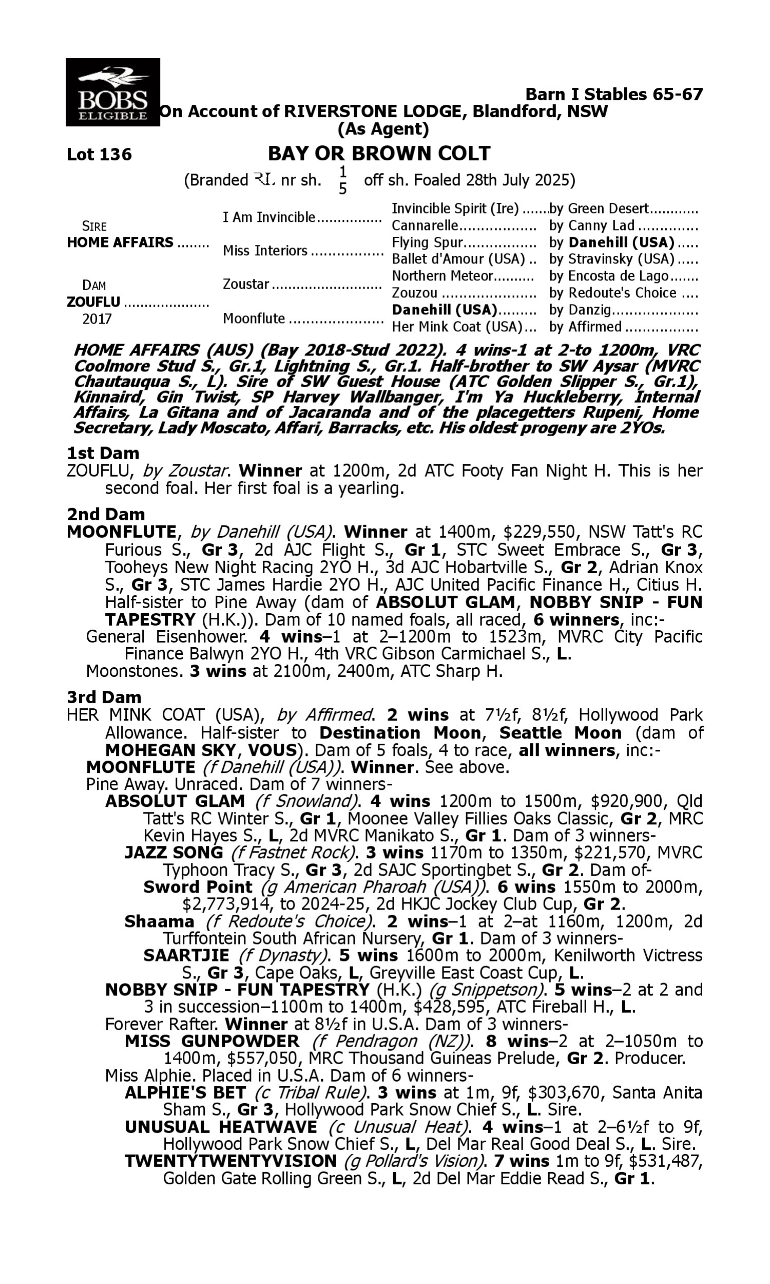 Pedigree for Lot 135 I Am Invincible - Zee Falls (NZ)