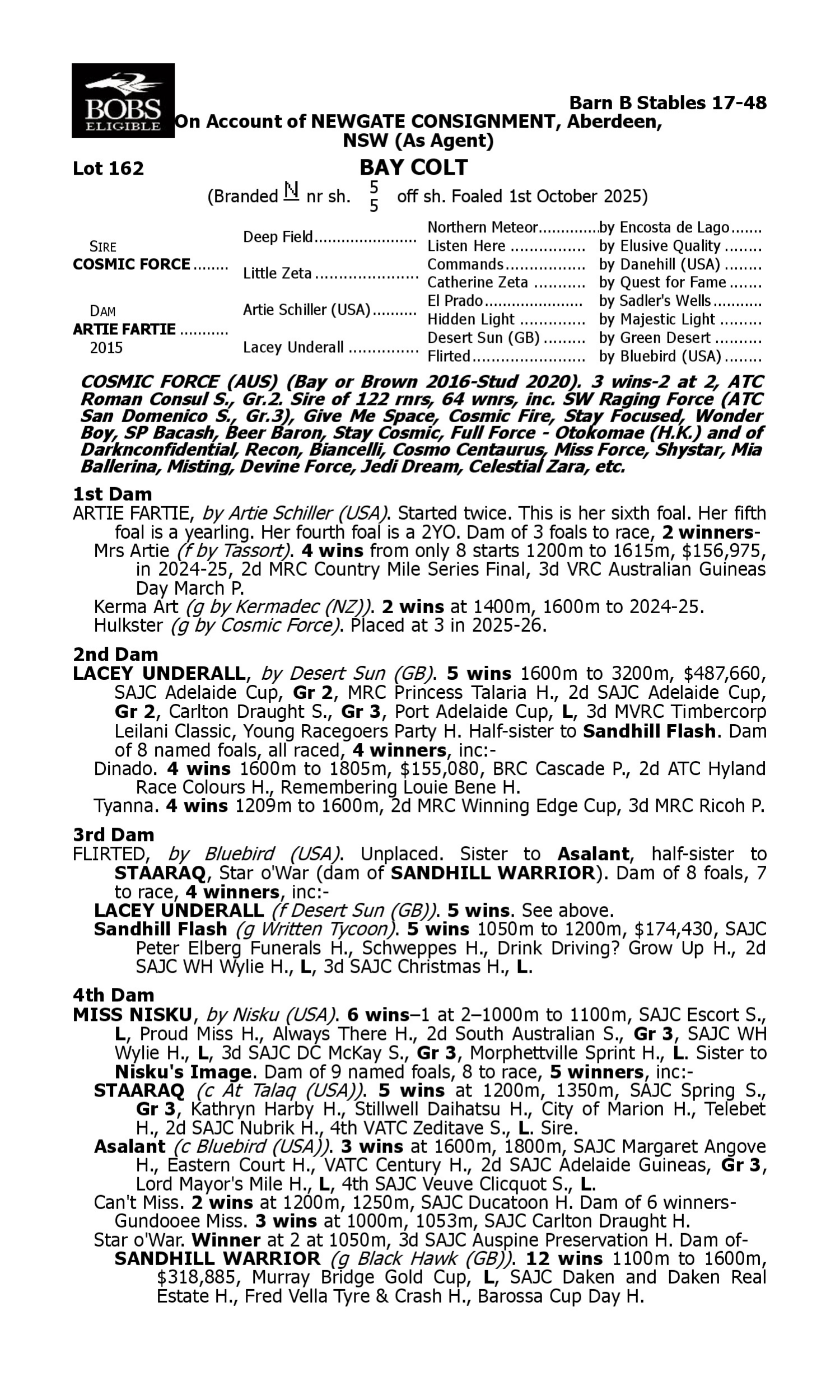 Lot 161 has pedigree updates since the release of the catalogue.