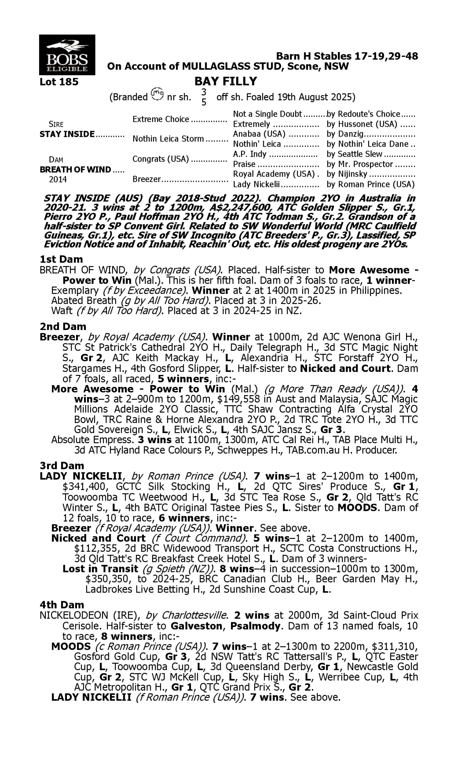 Lot 184 has pedigree updates since the release of the catalogue.