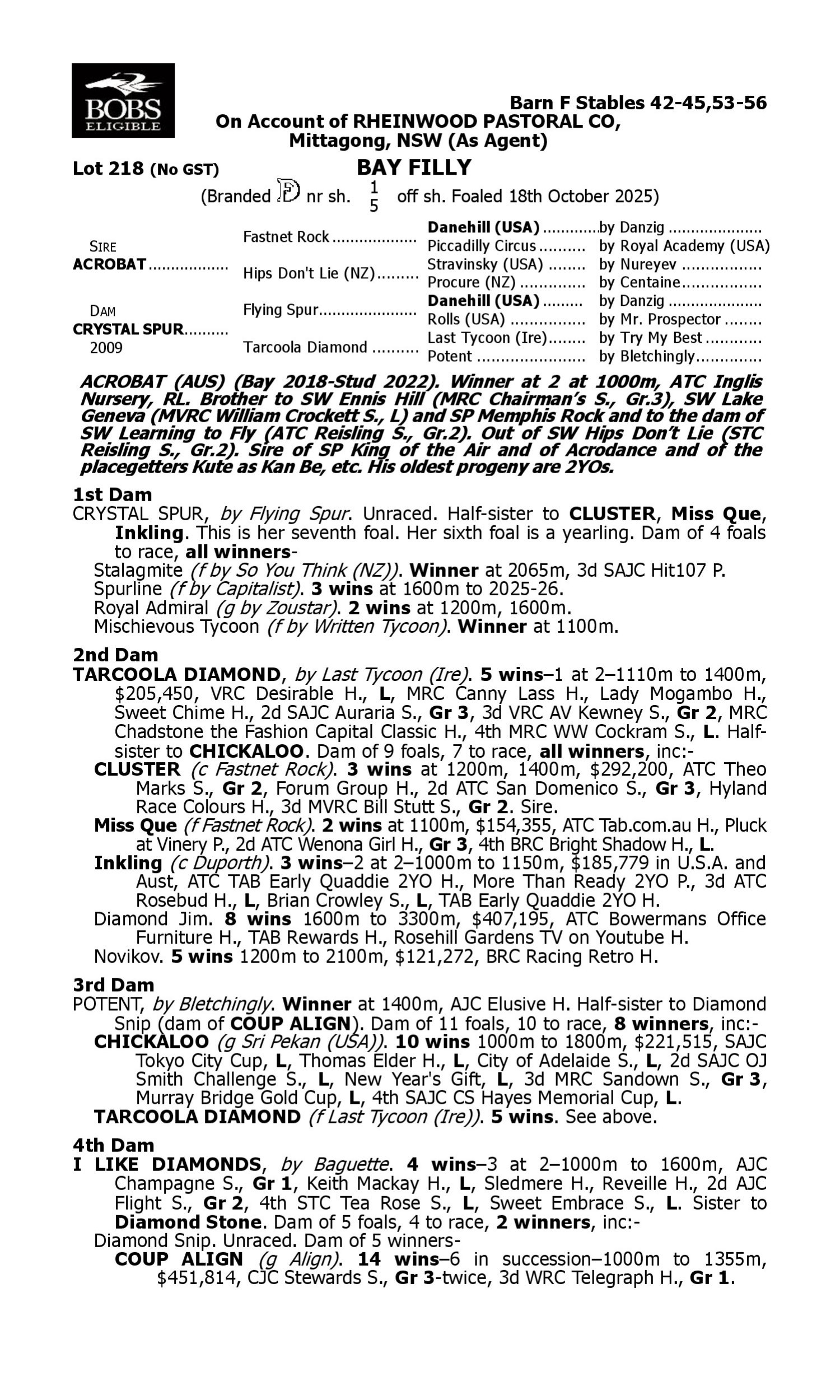 Lot 217 has pedigree updates since the release of the catalogue.
