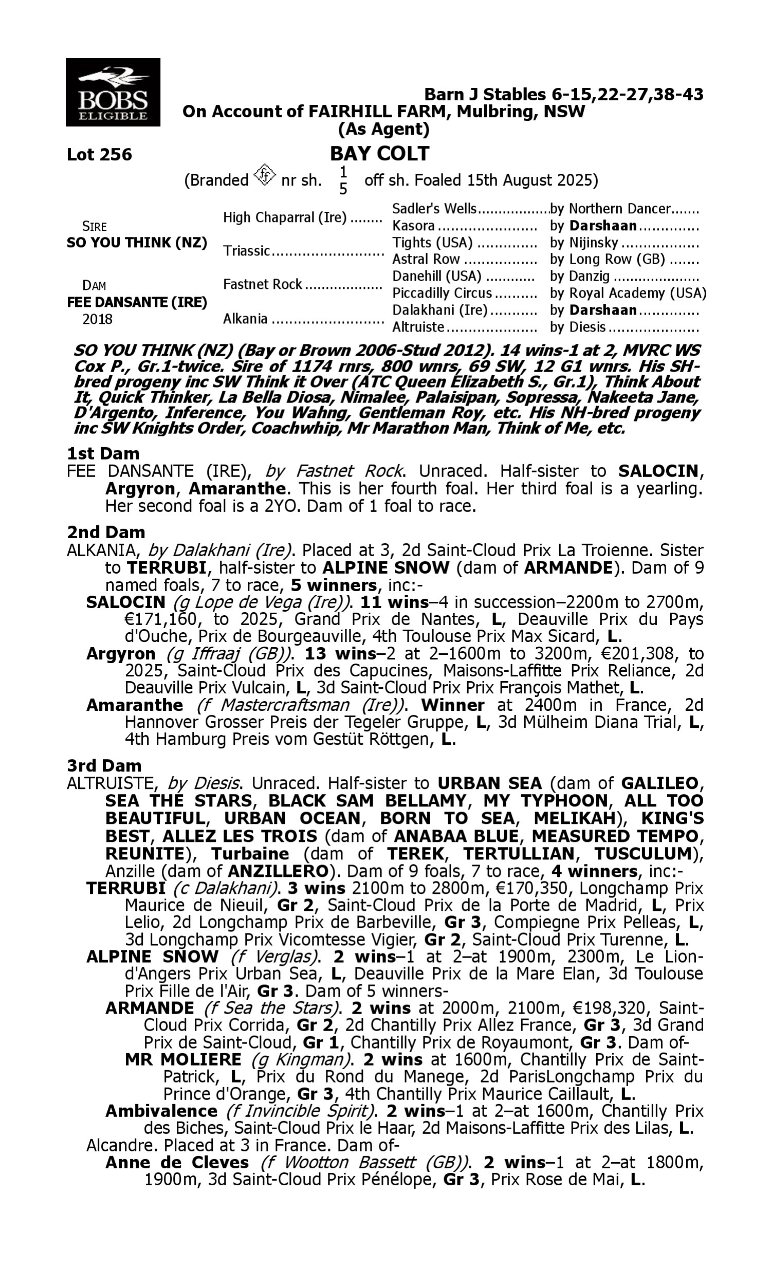 Lot 255 has pedigree updates since the release of the catalogue.